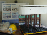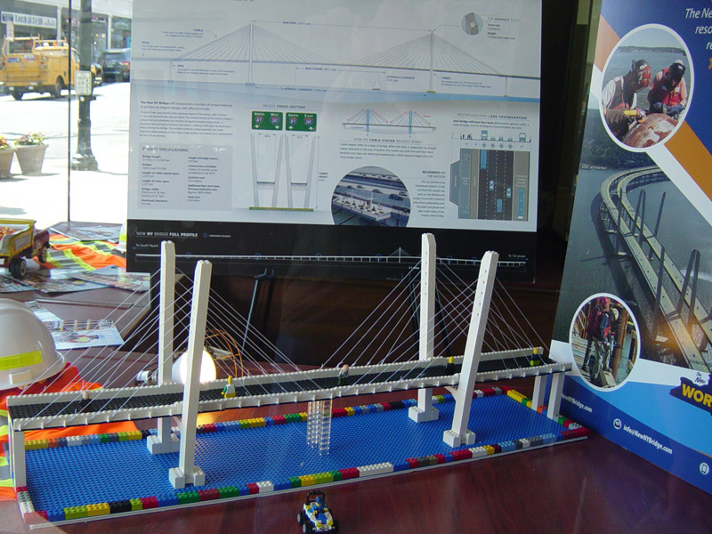 These pictures show models of the new Tappan Zee Bridge and the construction equipment that was used to build it that were on display at a Community Outreach Center located on Broadway (US 9) in Tarrytown while the construction was in progress.