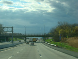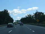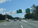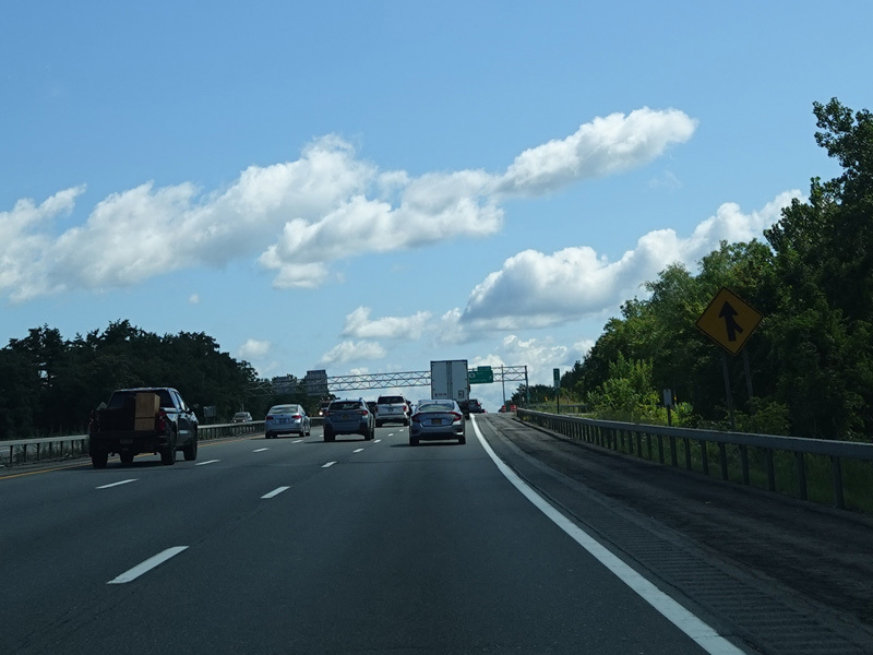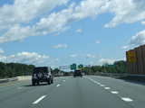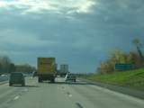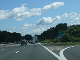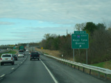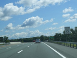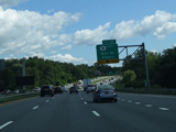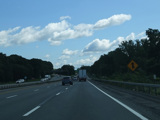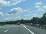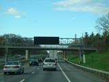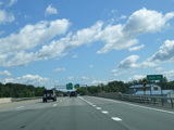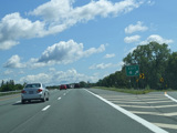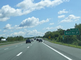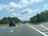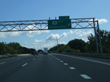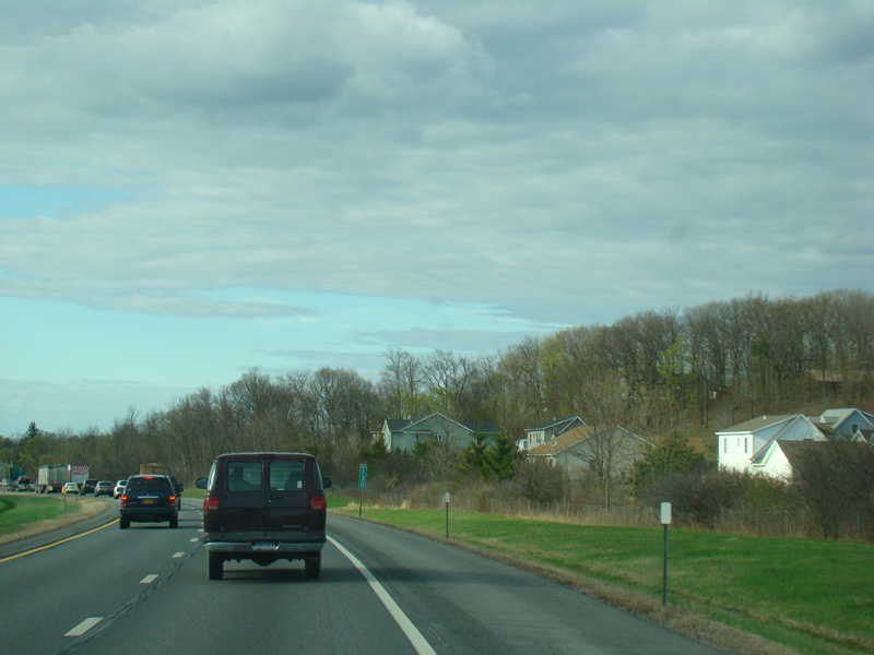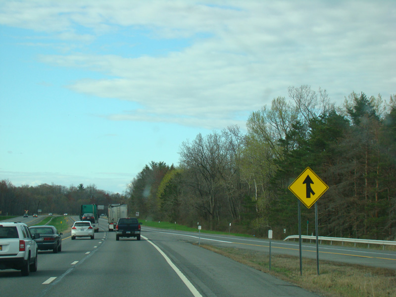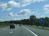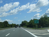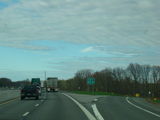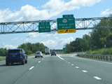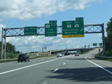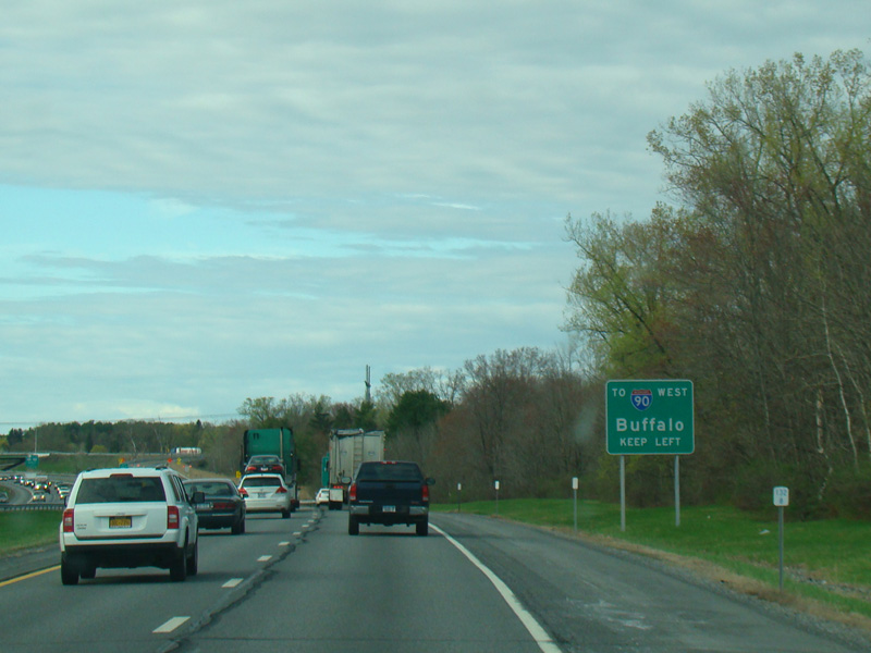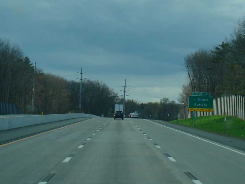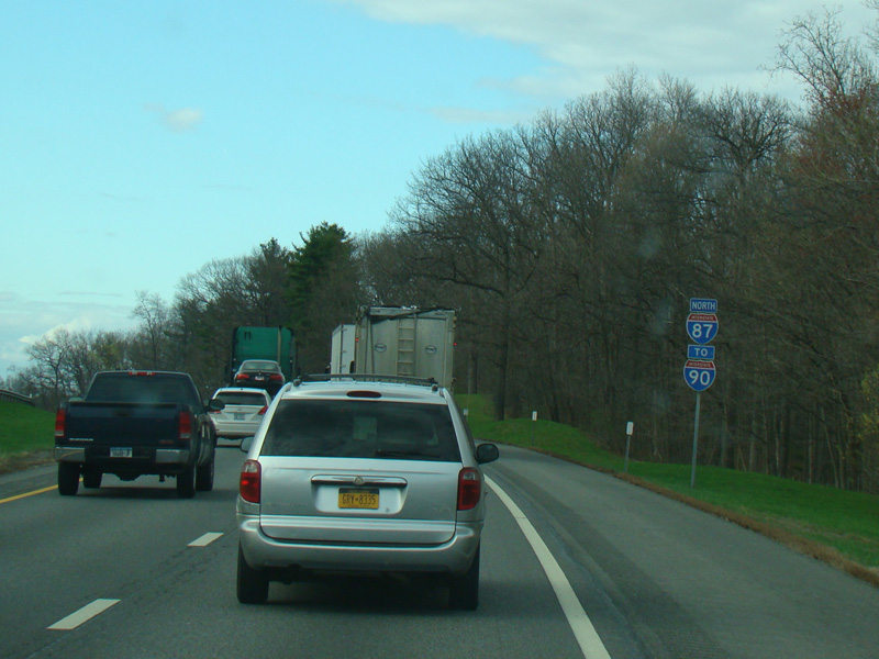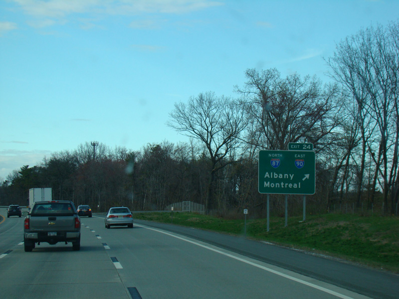 In Albany, the Thruway curves to the west. Exit 24 is for the Northway (I-87) north and I-90 east. At this rather confusing interchange, it is necessary to exit in order to stay on I-87. The Thruway continues straight ahead, taking on the designation of I-90 west about a mile west of here.