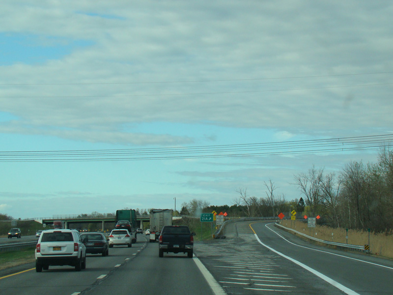 Exit 21A is for the Berkshire Connector, an extension of the Thruway that runs east from here to the Massachusetts border, where it becomes the Massachusetts Turnpike (I-90). It takes on the designation of I-90 one exit east of here, but here it has no signed route number.