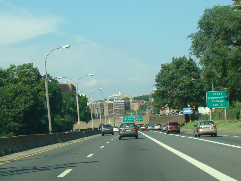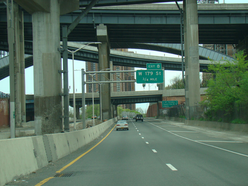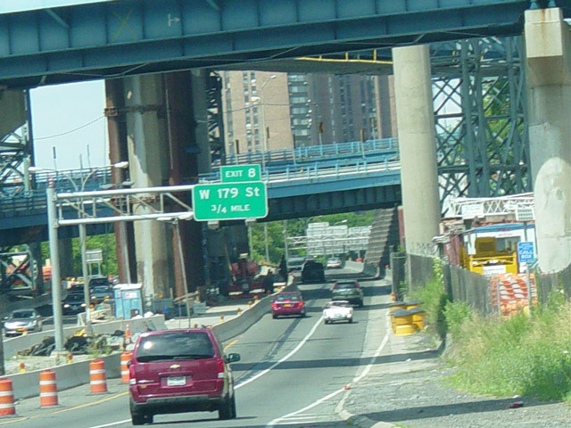 This sign exit to mark exit 8 on the Major Deegan Expressway. It was removed as part of a construction project.