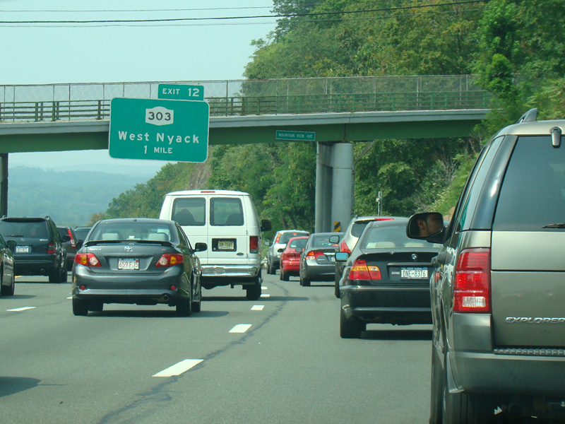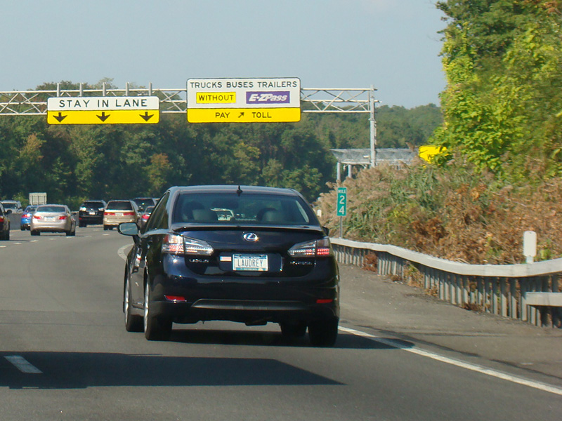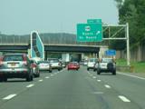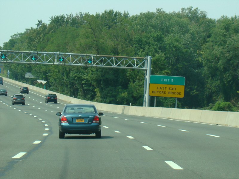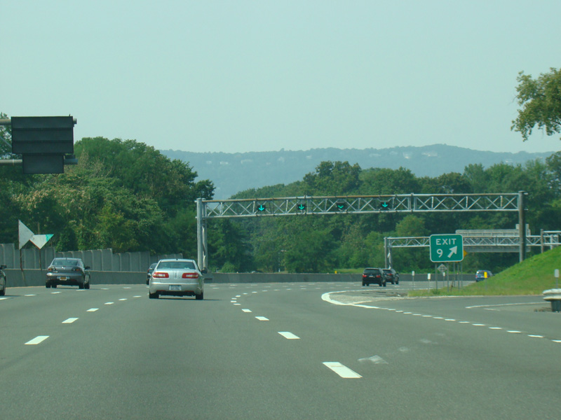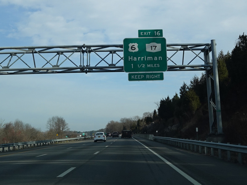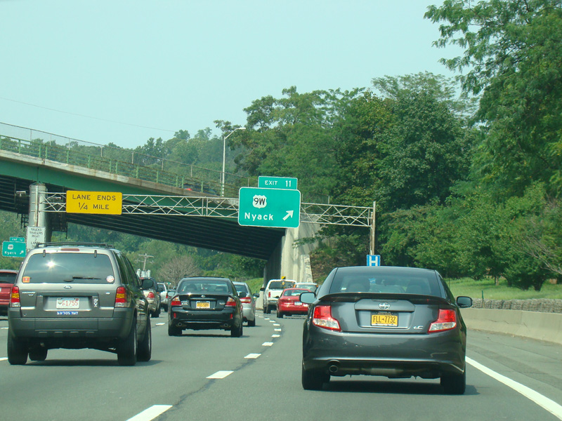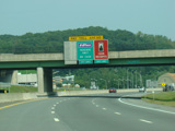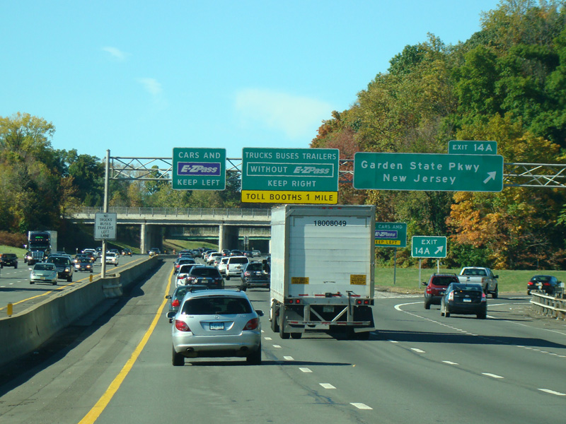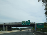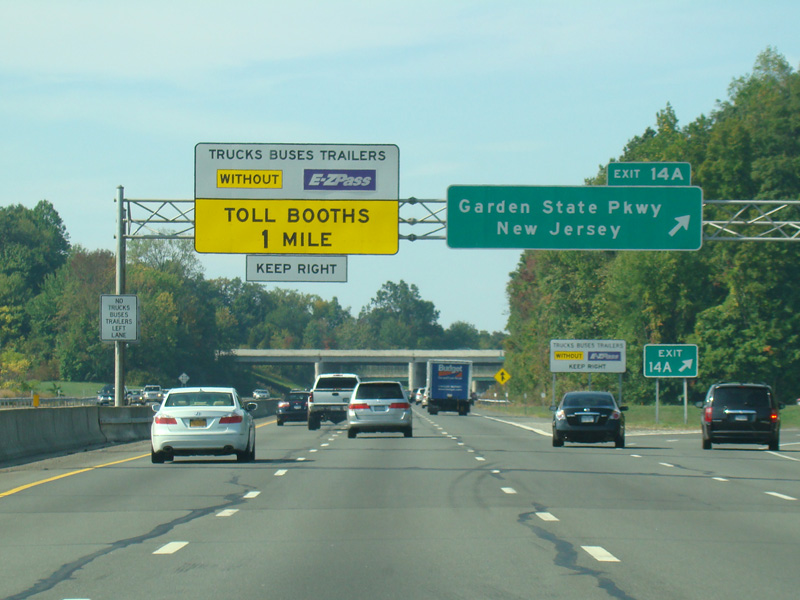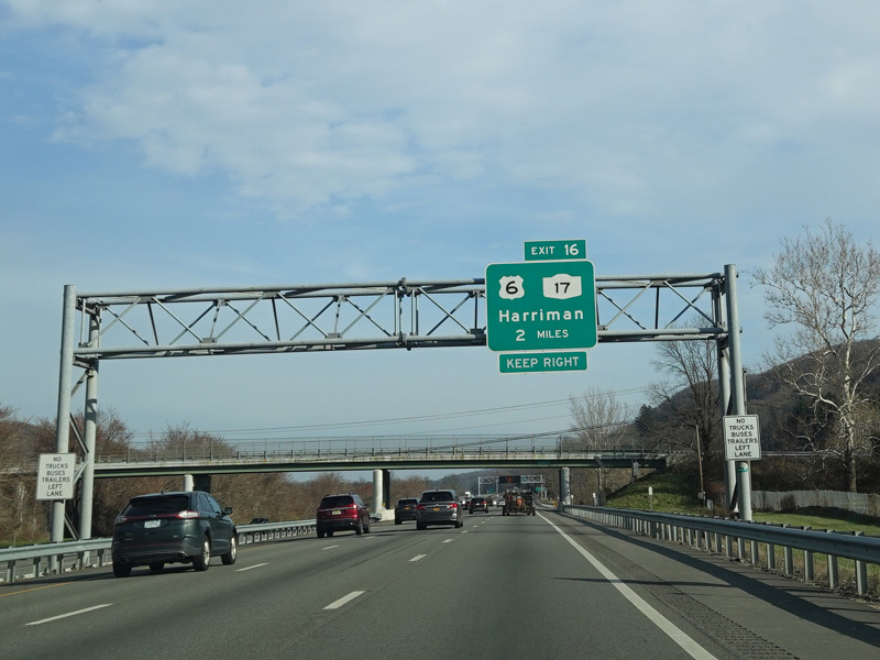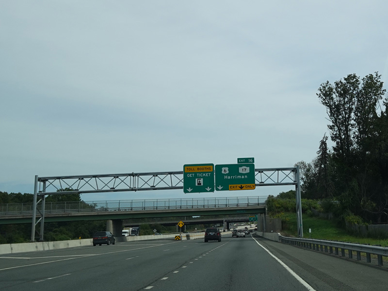 These pictures show the Thruway at exit 16 as it appeared in 2010. The "Through Lanes" tabs have been removed.