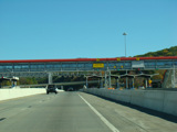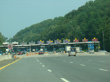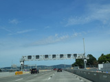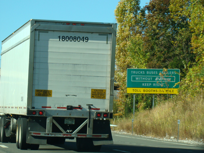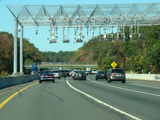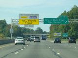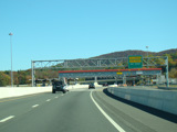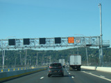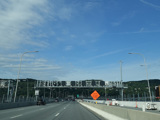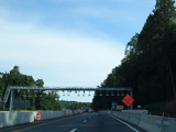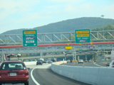 These pictures show the same area as it appeared after cashless tolling was activated but before the old toll plaza had been demolished. The old signs were still standing but had been modified to reflect the new lane usage.