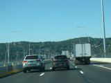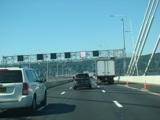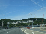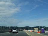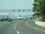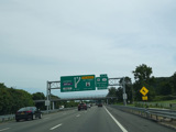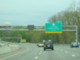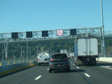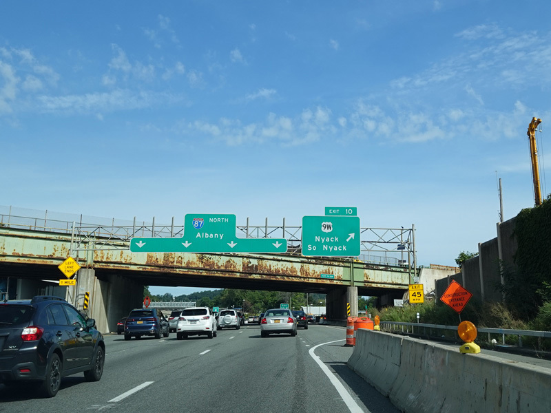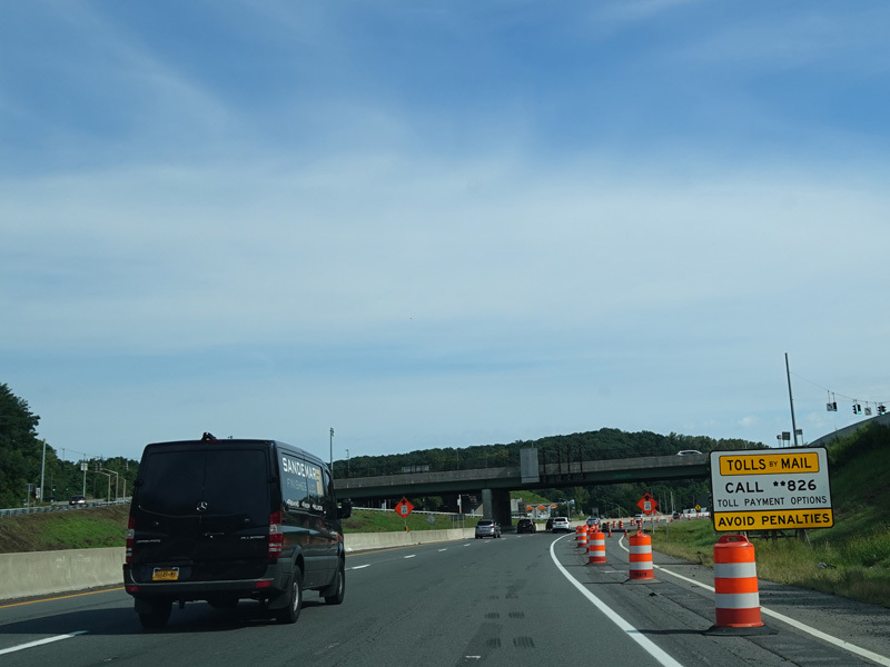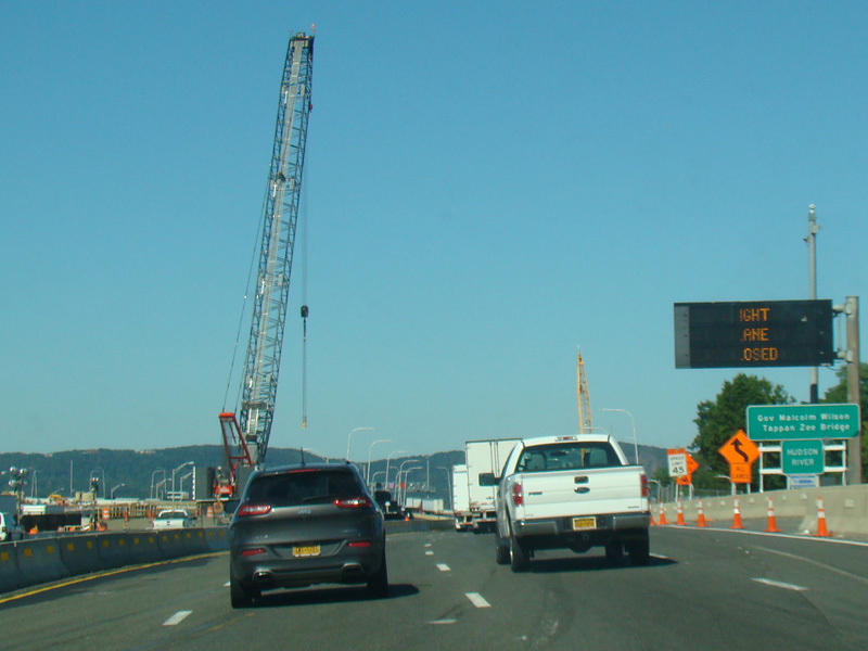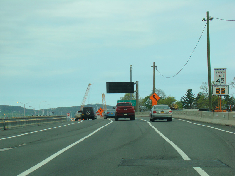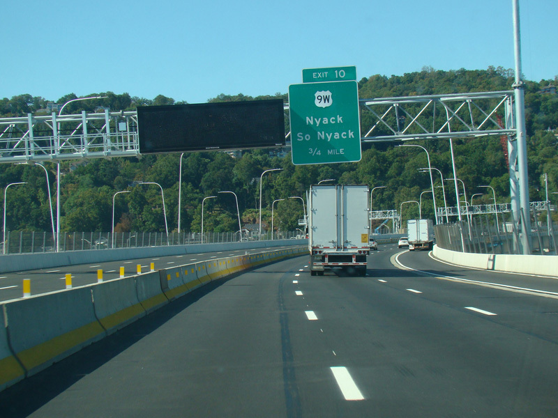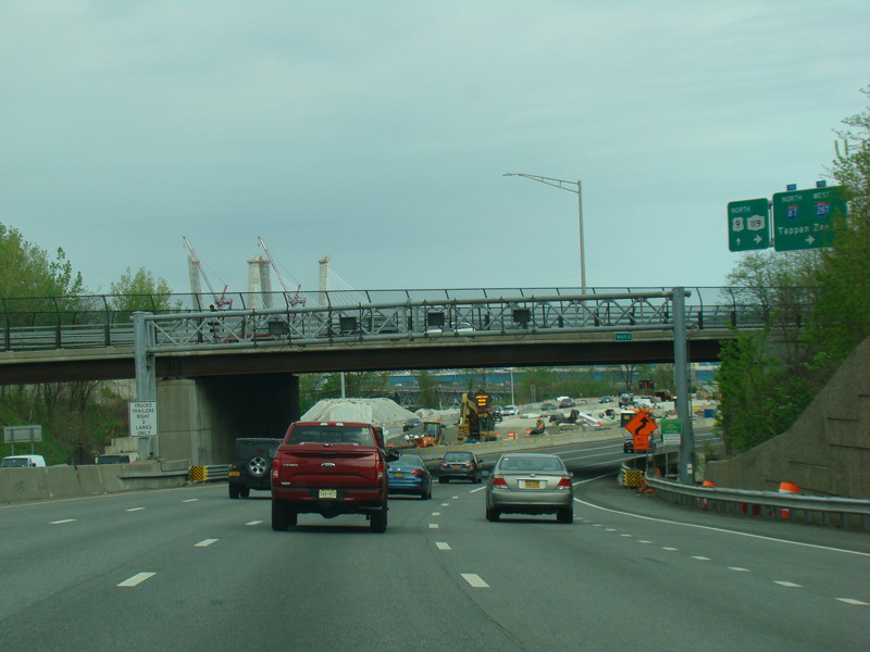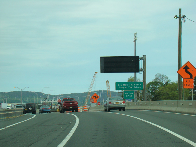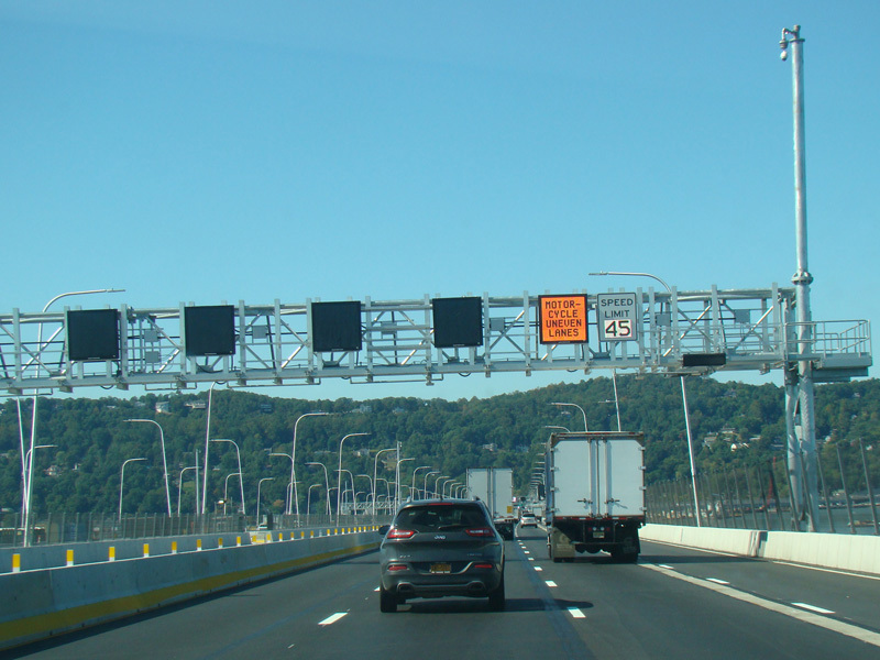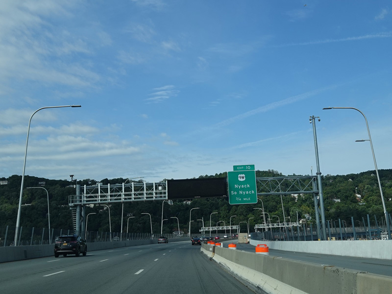The sign for the Tappan Zee Bridge on the left was replaced with one for the Governor Mario M. Cuomo Bridge.