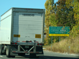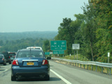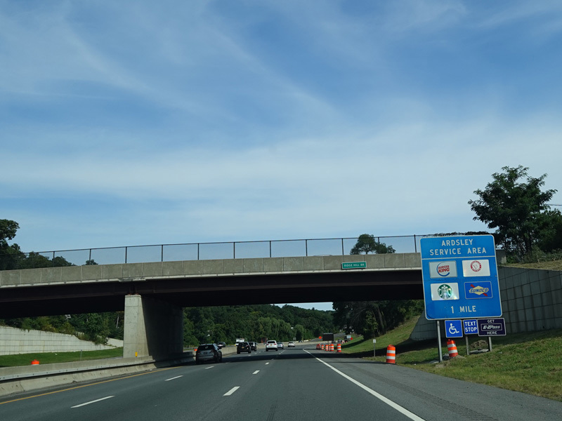 These signs were found along the Thruway northbound in Rockland County. They have all been replaced with new signs that use the Clearview font.