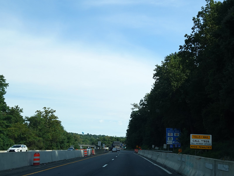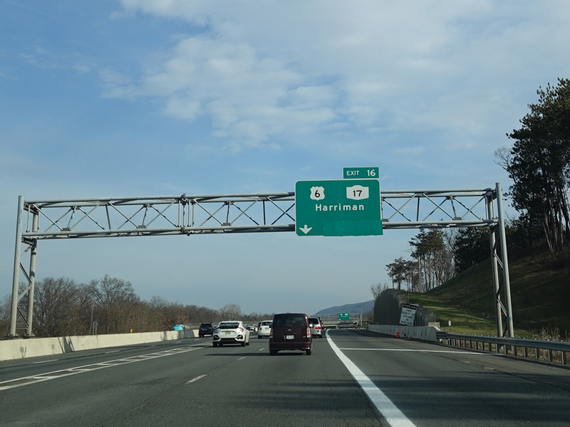 Before the introduction of cashless tolling, there was a tollbooth in Spring Valley. Trucks, buses, and trailers without E-ZPass had to bear right for the tollbooth, while other vehicles could continue straight ahead along the Thruway.