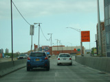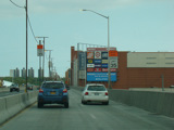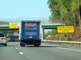 The tabs on these signs advising wide trucks to avoid exit 16 have been removed.