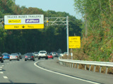 Going several years further back, these signs with white backgrounds used to mark the truck-only toll in Spring Valley. They were replaced with new signs that have green backgrounds.