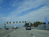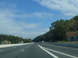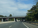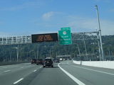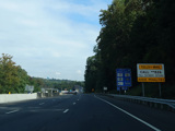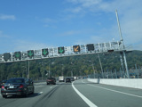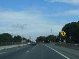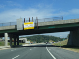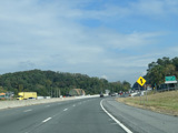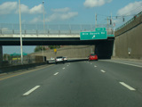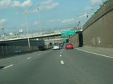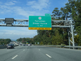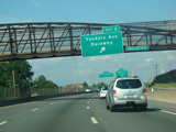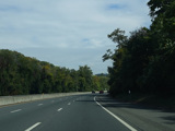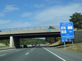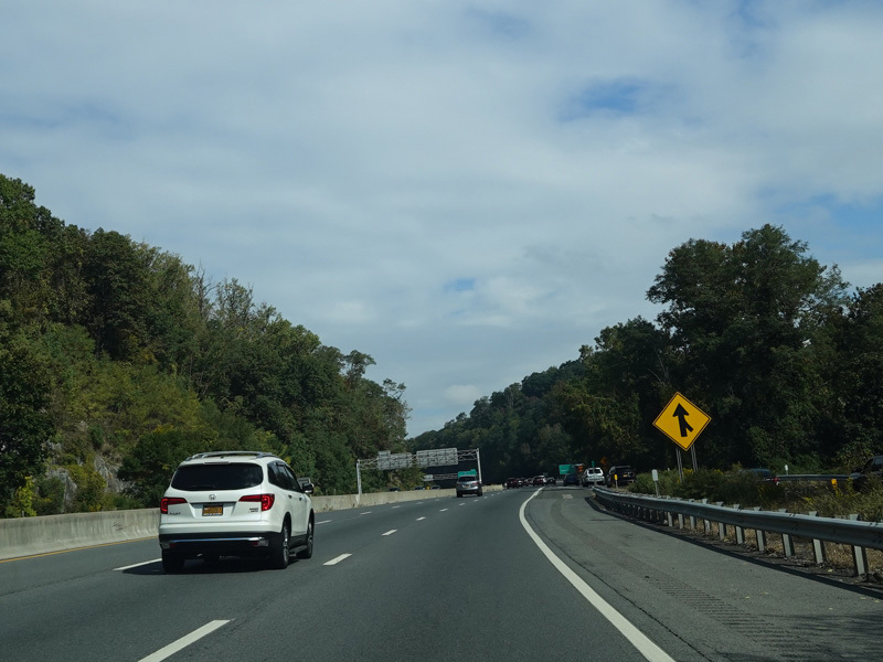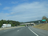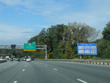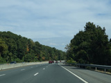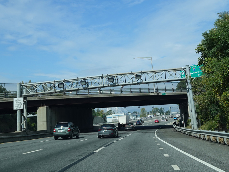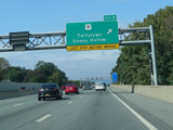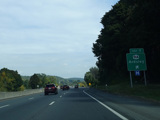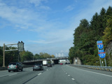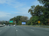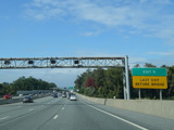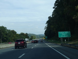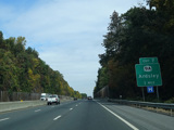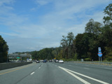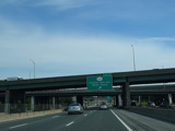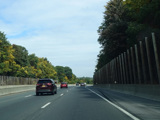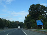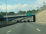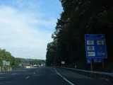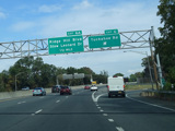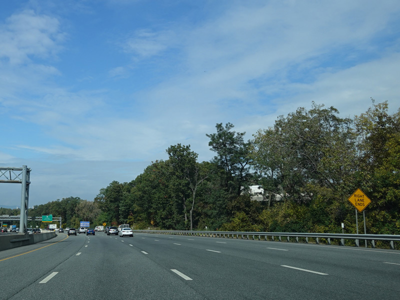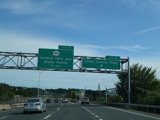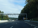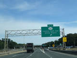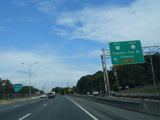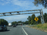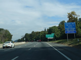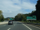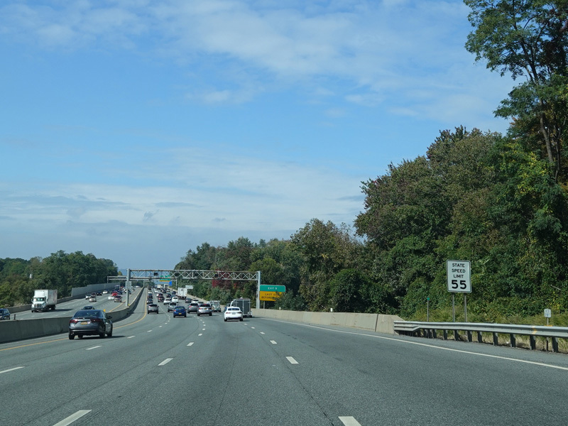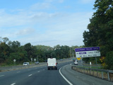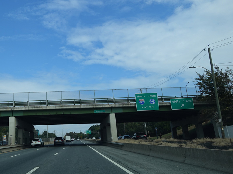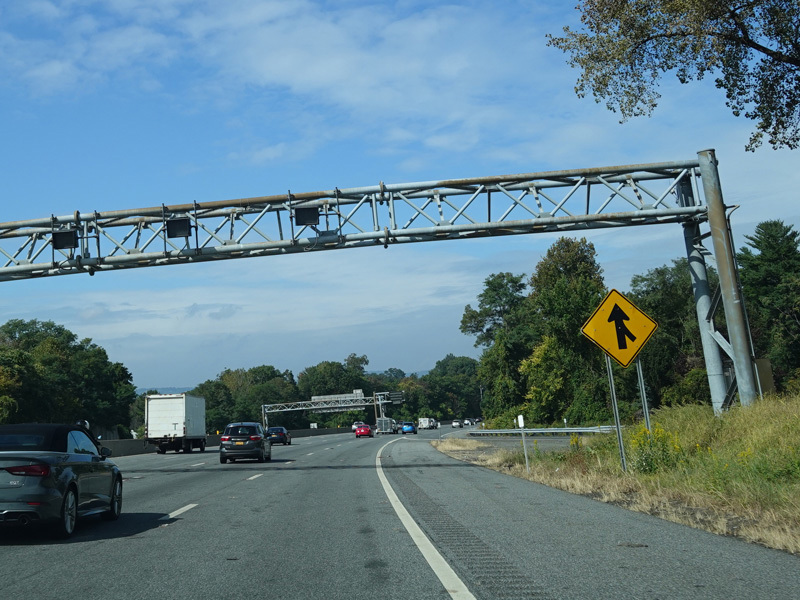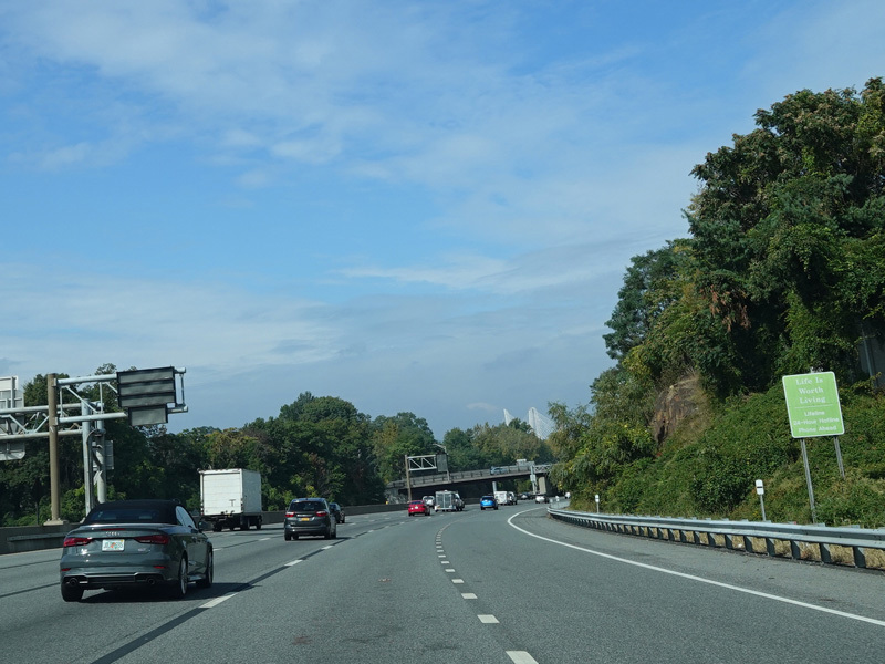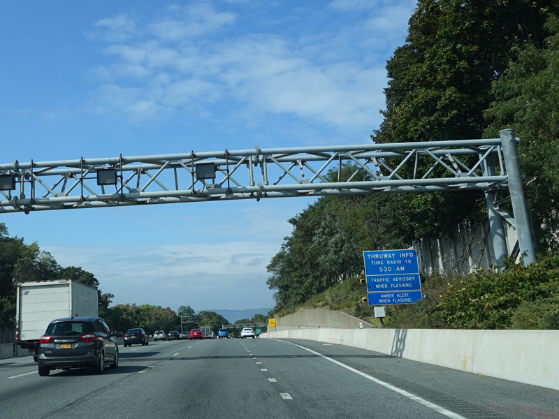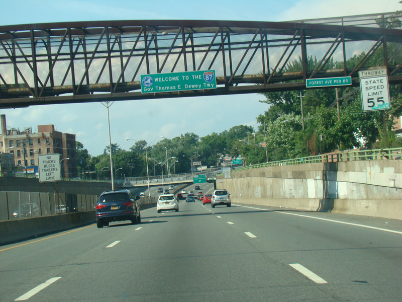 Welcome to Westchester County! The Major Deegan Expressway ends at the Bronx-Westchester county line. I-87 becomes the New York Thruway at this point. An overhead sign welcomes motorists to the Thruway. The exit numbers begin again at exit 1.