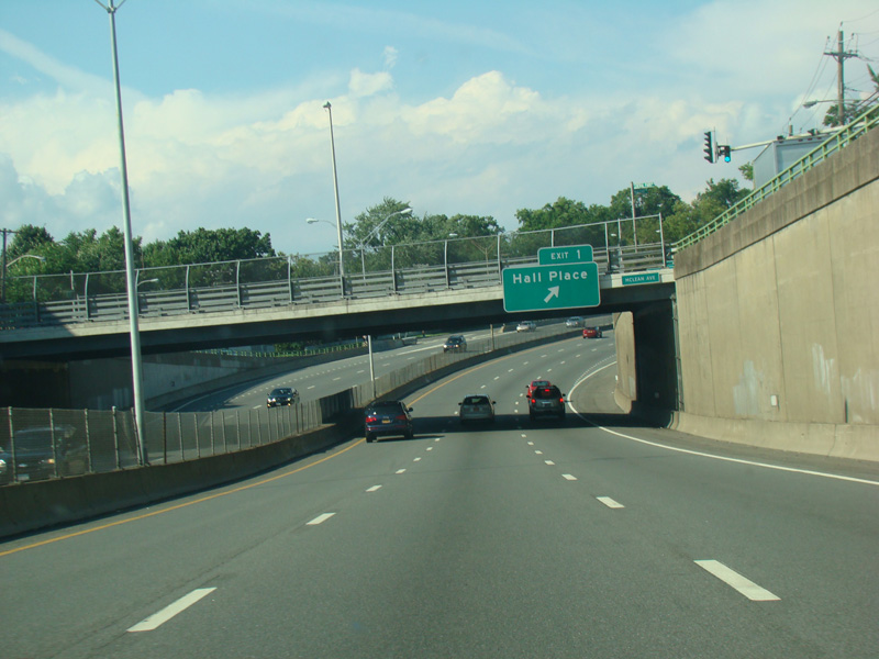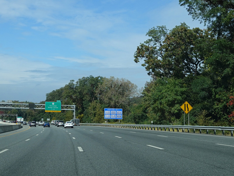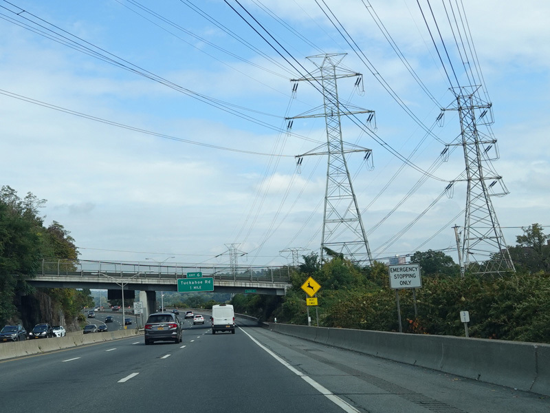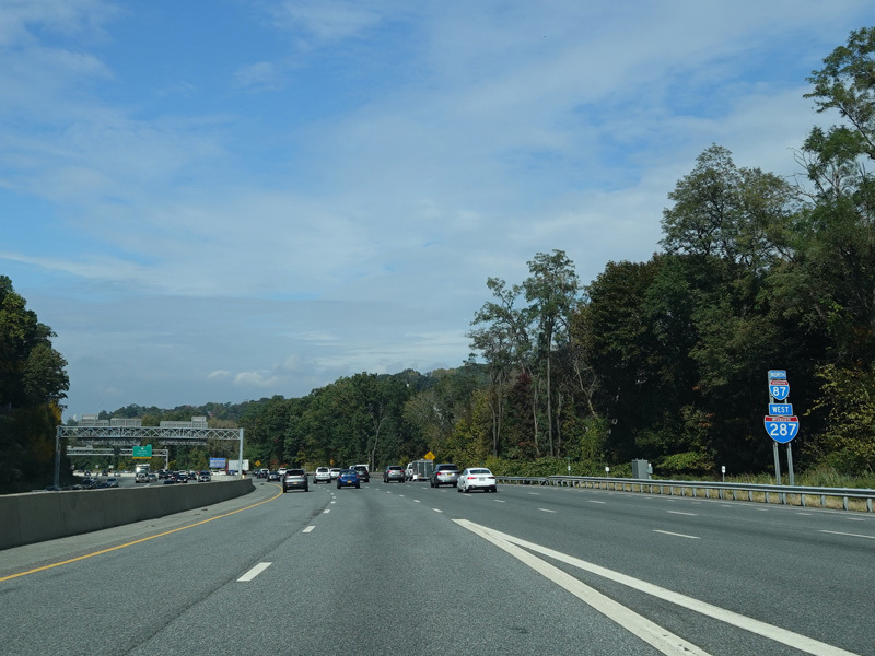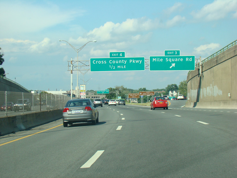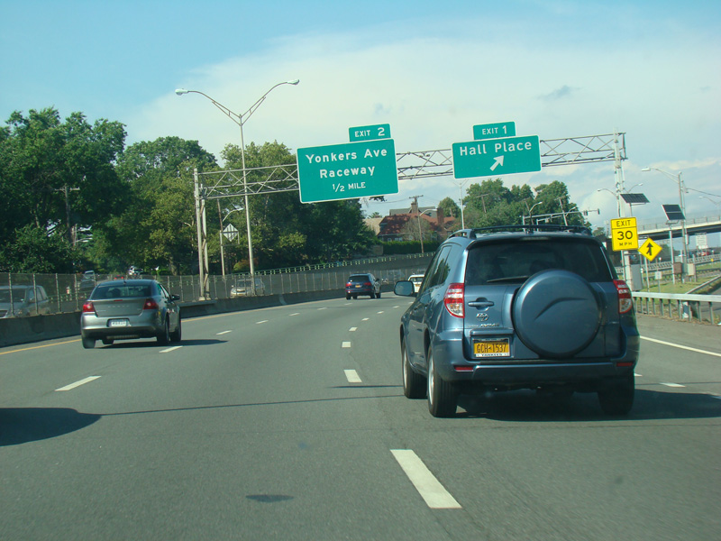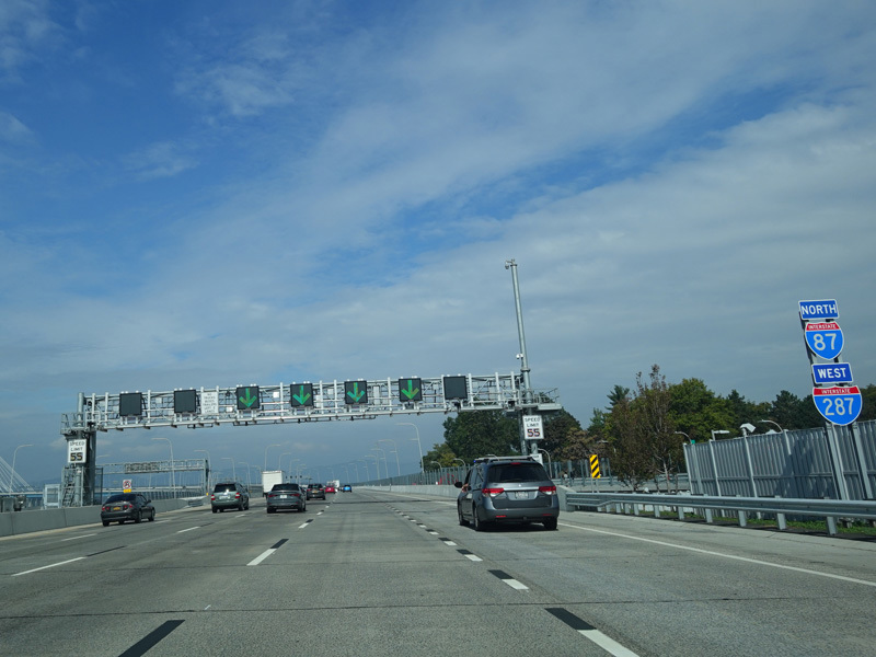 Exit 8 is for the Cross Westchester Expressway (I-287) east. It also provides access to NY 119 and the Saw Mill Parkway north. I-287 west is multiplexed with I-87 north along the Thruway straight ahead.