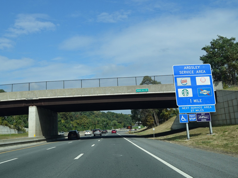 There is a cashless tolling gantry after exit 6A. The Ardsley Service Area is just past the toll.