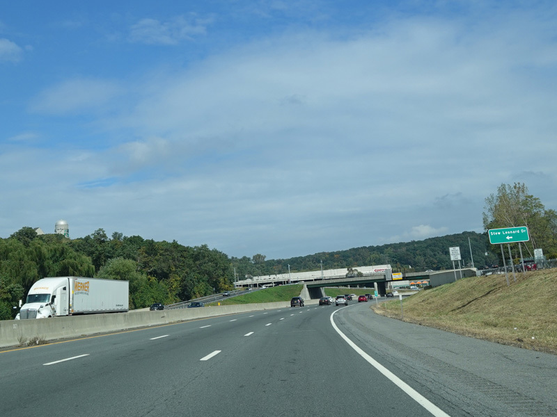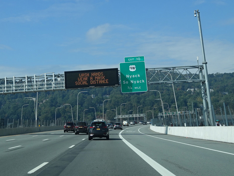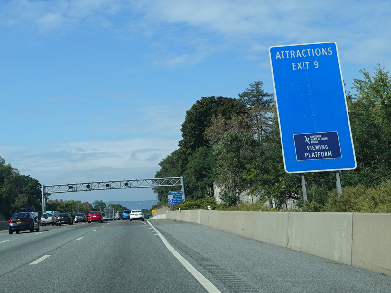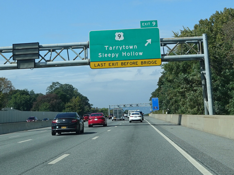 Exit 9 is for Broadway (US 9). It is the last exit before the Tappan Zee Bridge. All vehicles carrying certain types of explosives must exit here because they are not allowed on the bridge.