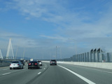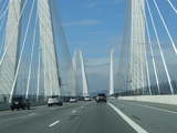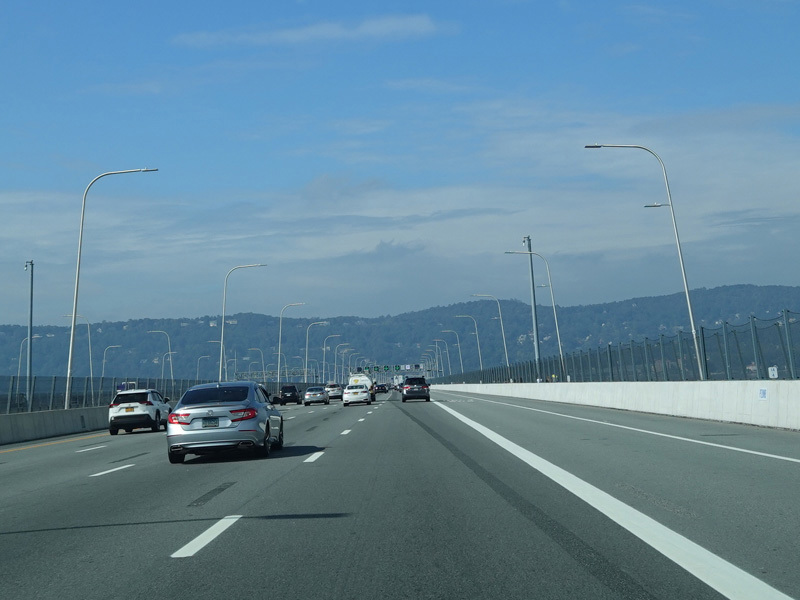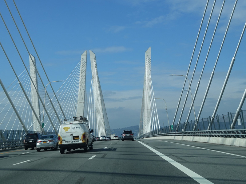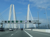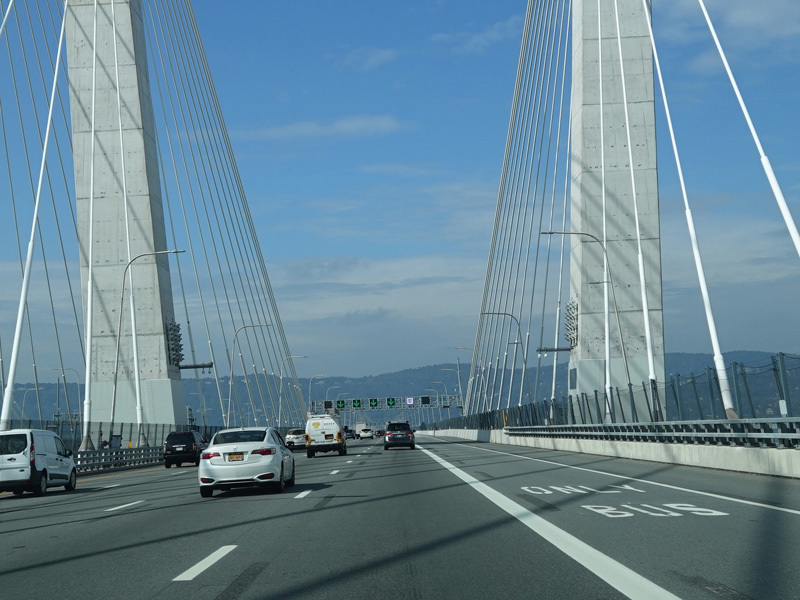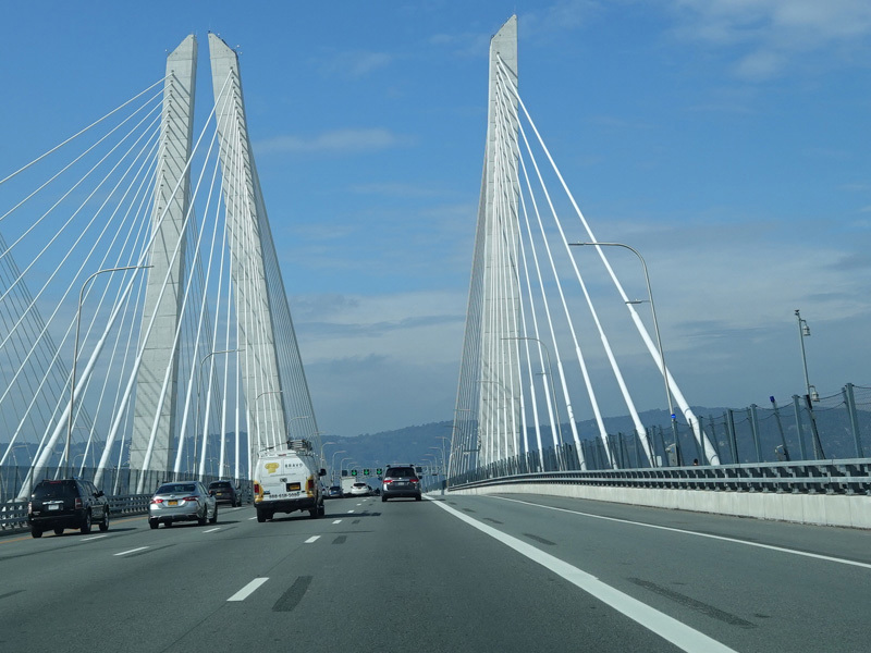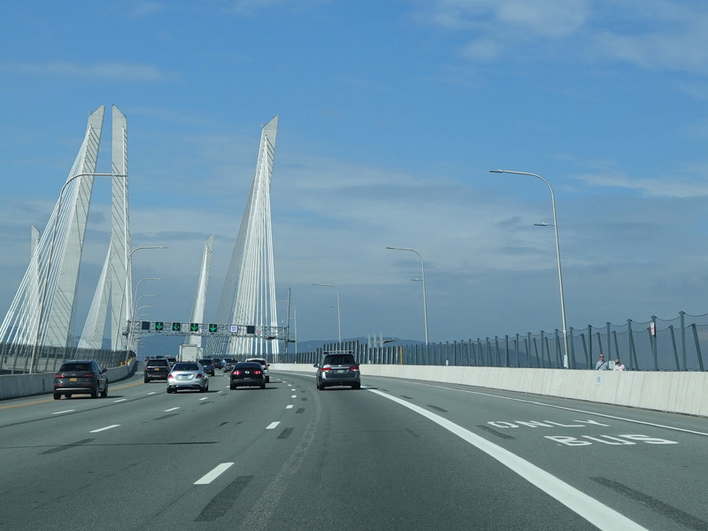 The Governor Mario M. Cuomo Bridge is a cable-stayed bridge carrying the Thruway across the Hudson River to Rockland County.