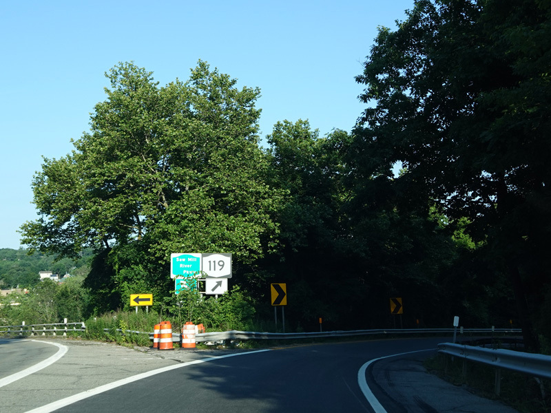The ramp for exit 8A runs next to the Cross Westchester Expressway (I-287) for a short distance and then splits. Bear left for the Saw Mill Parkway north. Bear right for NY 119.