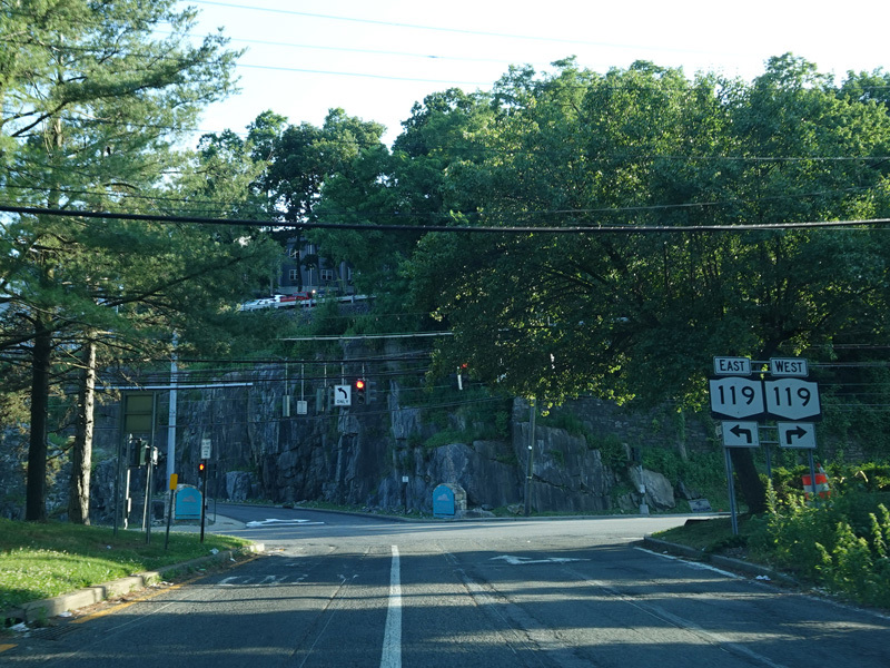 The ramp for NY 119 ends at a traffic light. Turn left to go east or right to go west.