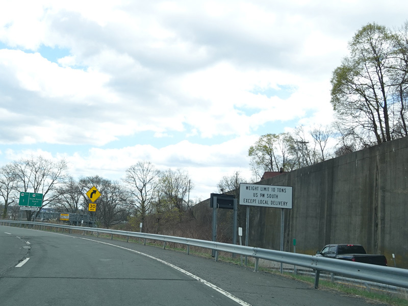 The ramp for exit 10 loops around and then ends at a traffic light at US 9W. Use the exit on the right to go north, or turn left at the light to go south.