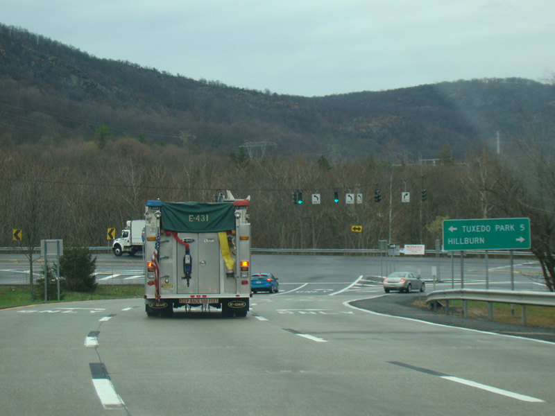 The ramp for exit 15A leads to a traffic light at Orange Turnpike. Turn left for NY 17 north or right for NY 59 east.