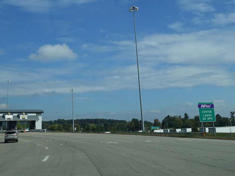 Motorists getting on the Thruway at exit 19 pass through this tollbooth. Then, the ramp splits. Bear right to go north or left to go south.