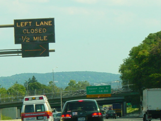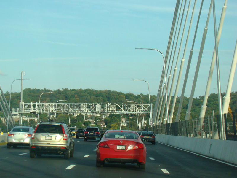 This photograph shows the Thruway southbound approaching the Tappan Zee Bridge when the toll was $4.00. It has since been raised.