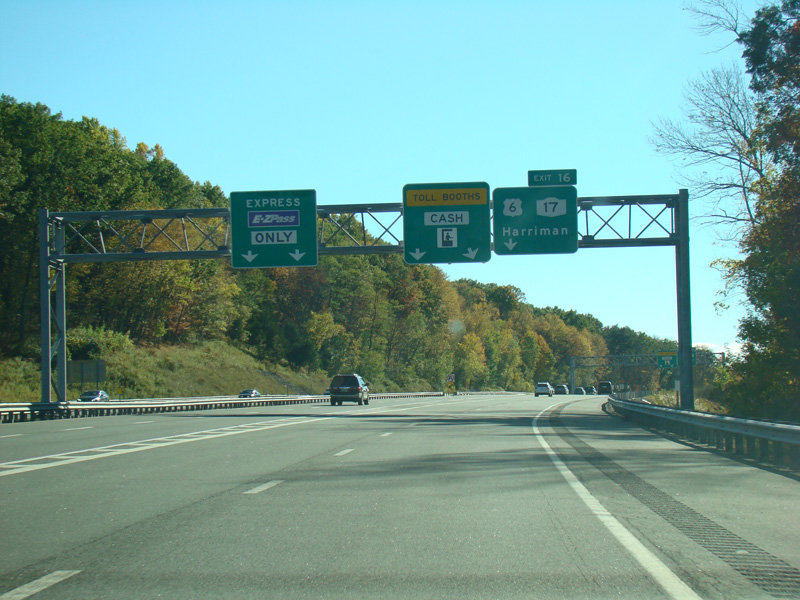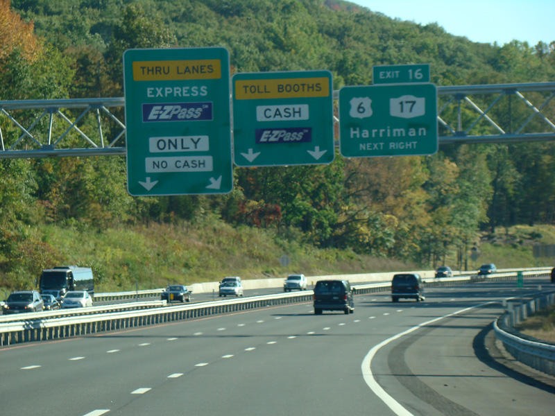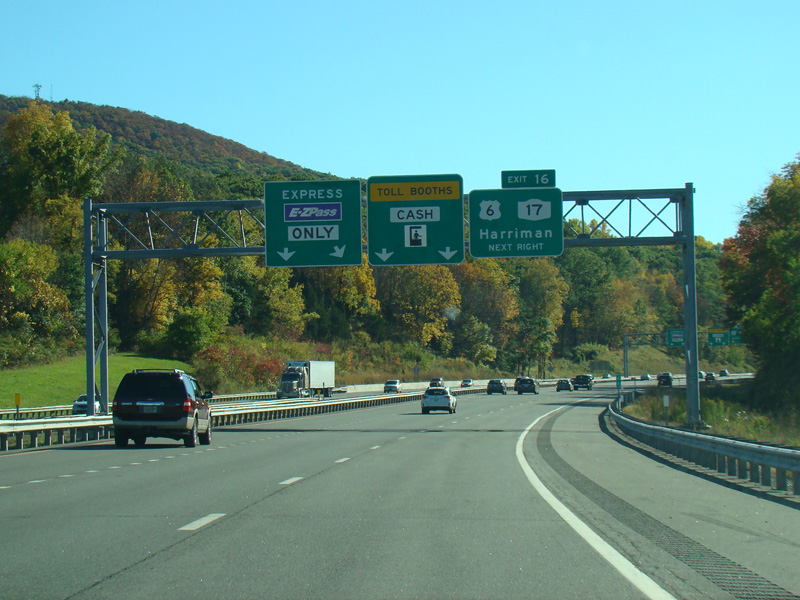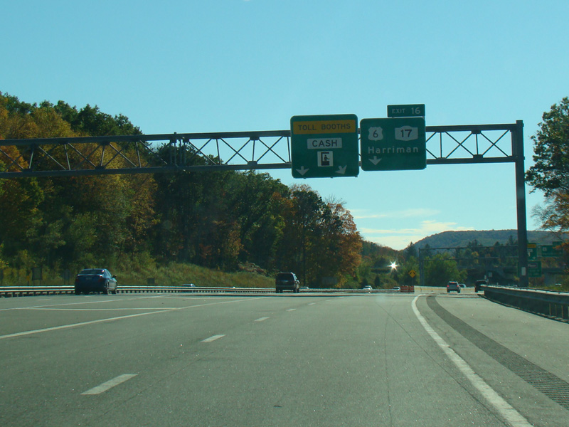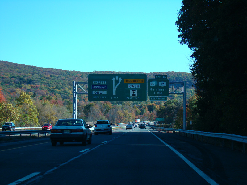 These photographs show the Thruway southbound at exit 16 prior to the addition of express E-ZPass lanes.