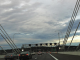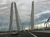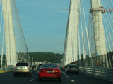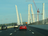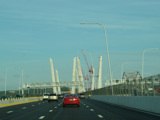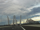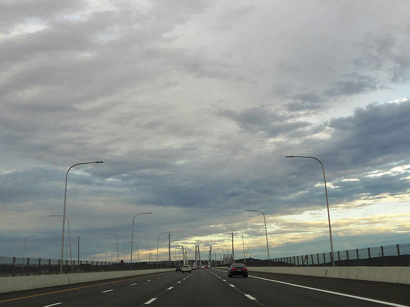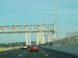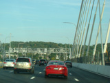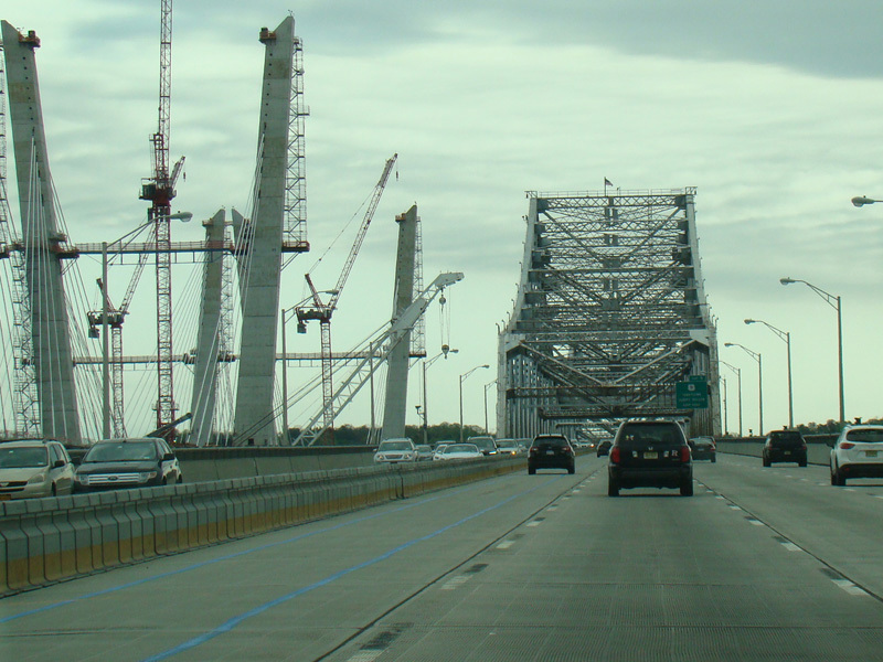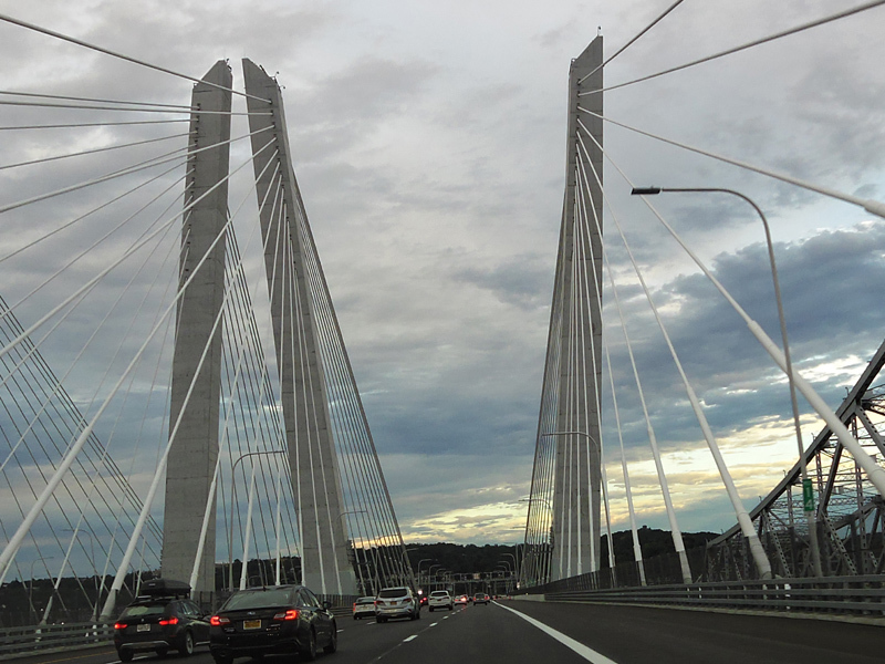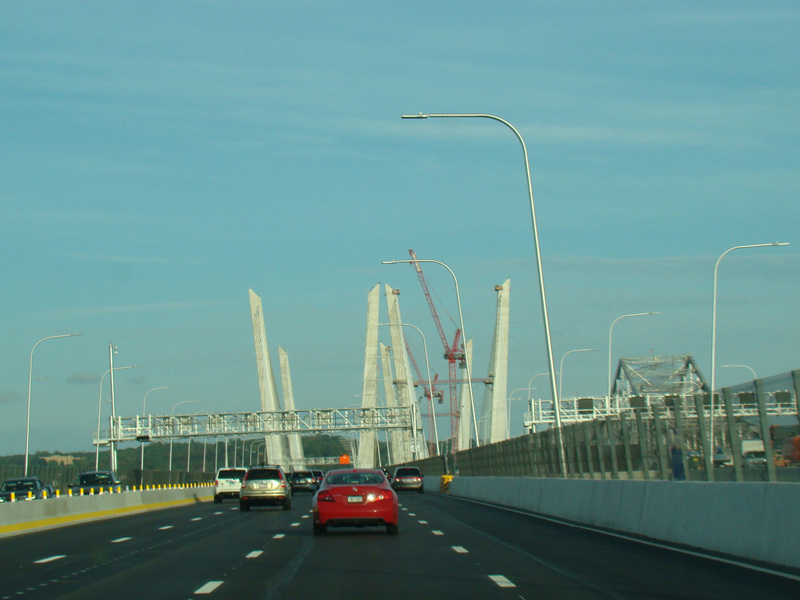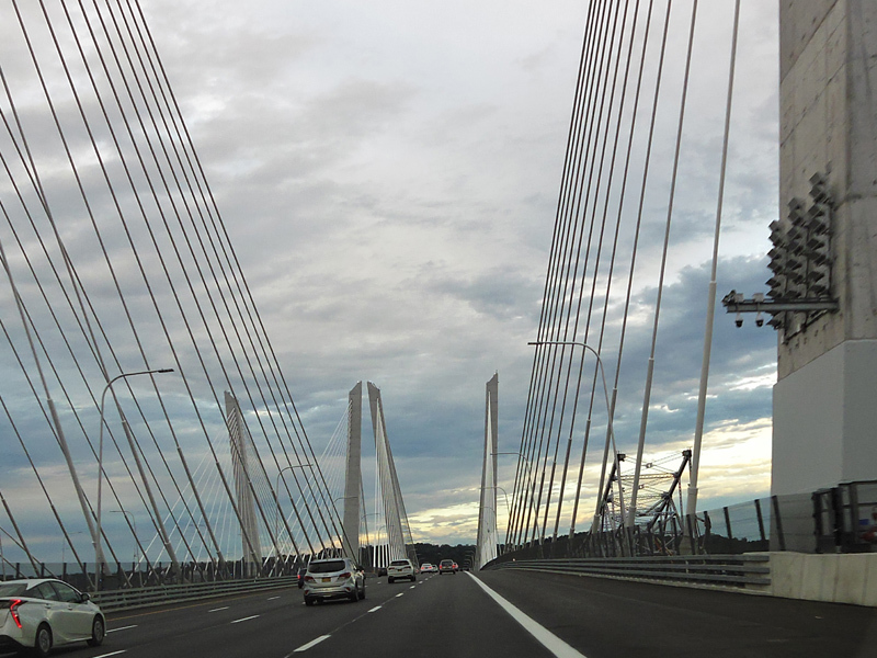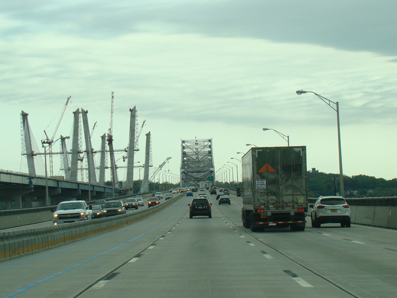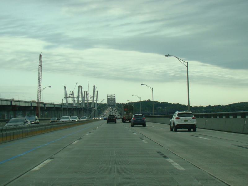 These pictures show the Governor Mario M. Cuomo Bridge as it appeared shortly after the southbound side was opened to traffic. The original Tappan Zee Bridge was visible on the right at the time. It has since been fully demolished. A bus lane has also been added on the right shoulder.