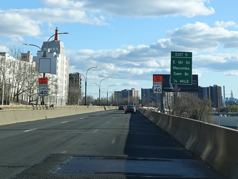 Welcome to the Bronx! The exit numbers start over again as the New York Thruway becomes the Major Deegan Expressway. Exit 13 is for East 233 Street.