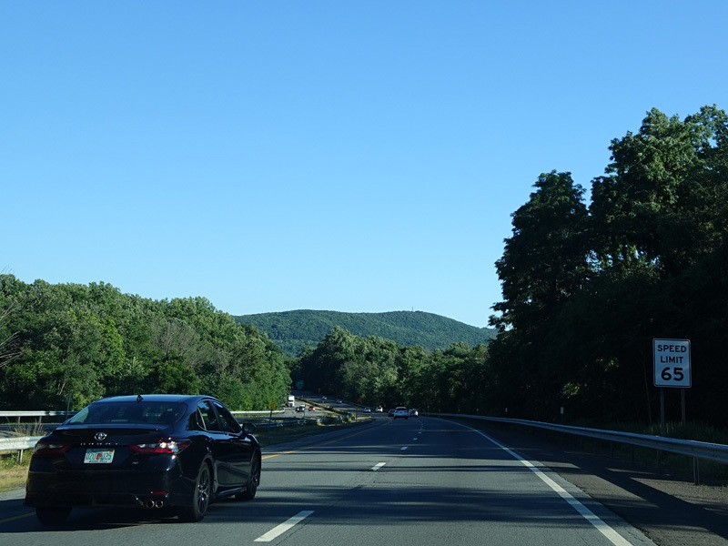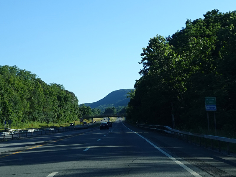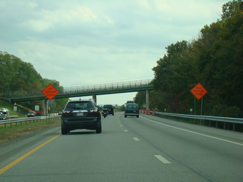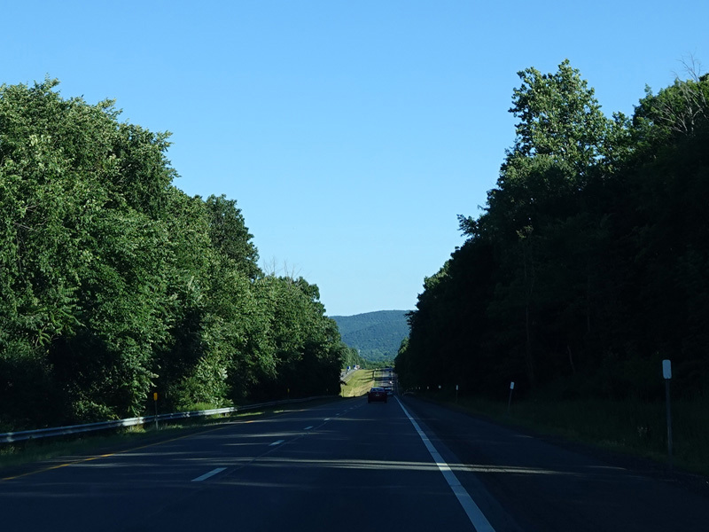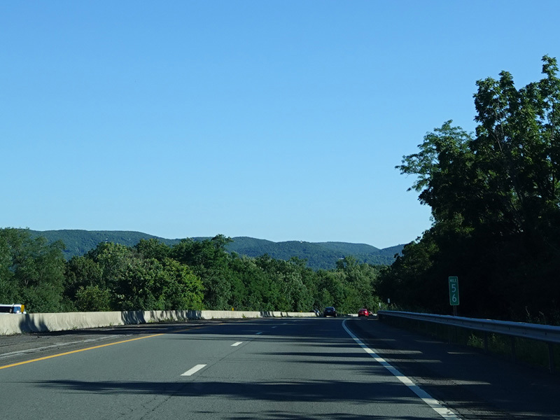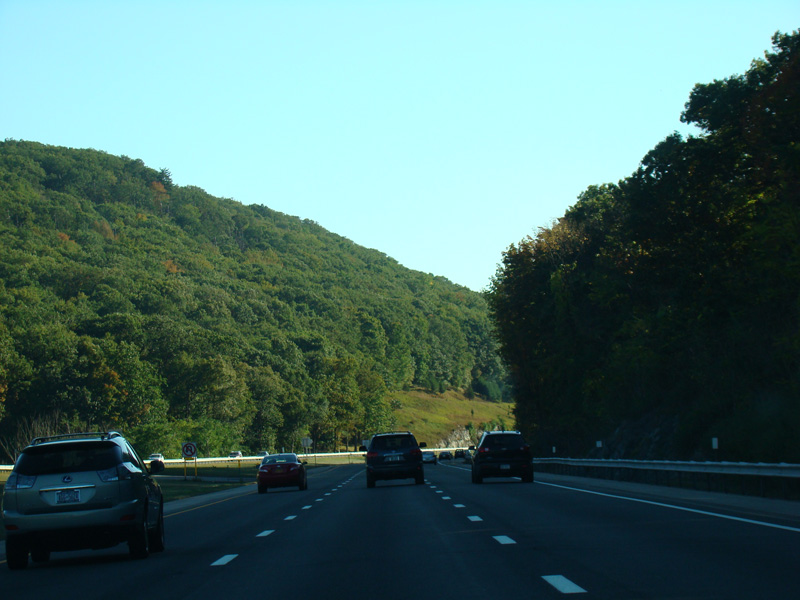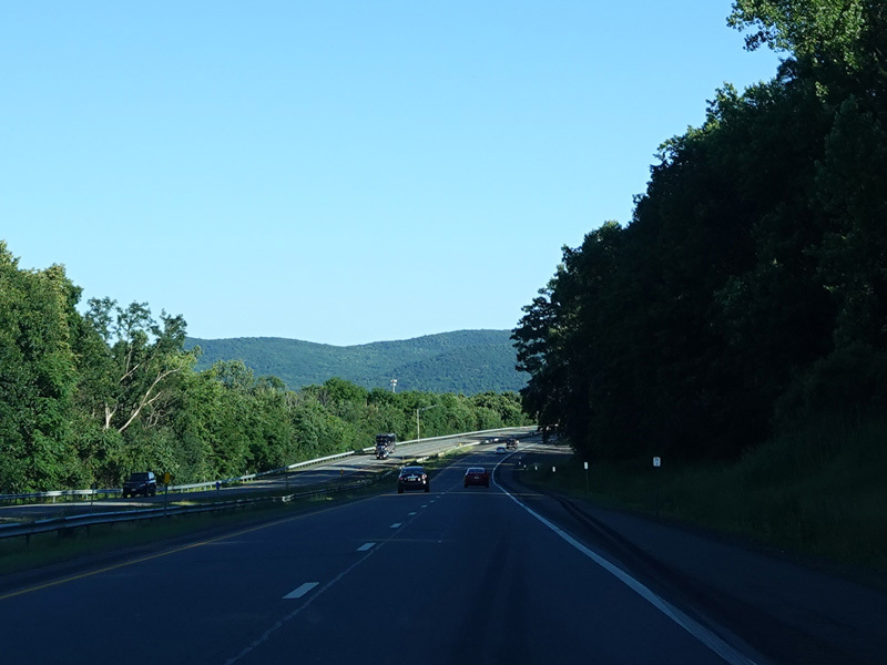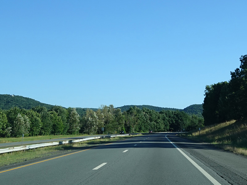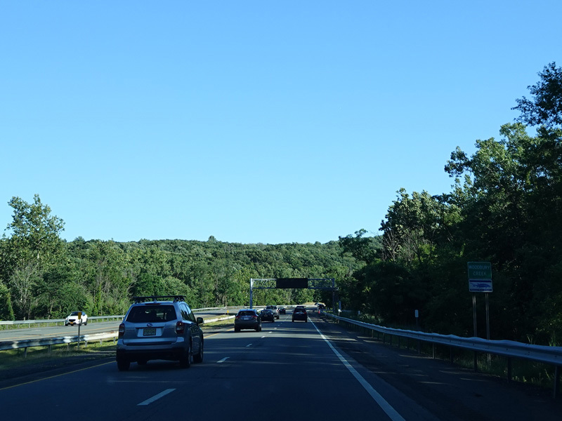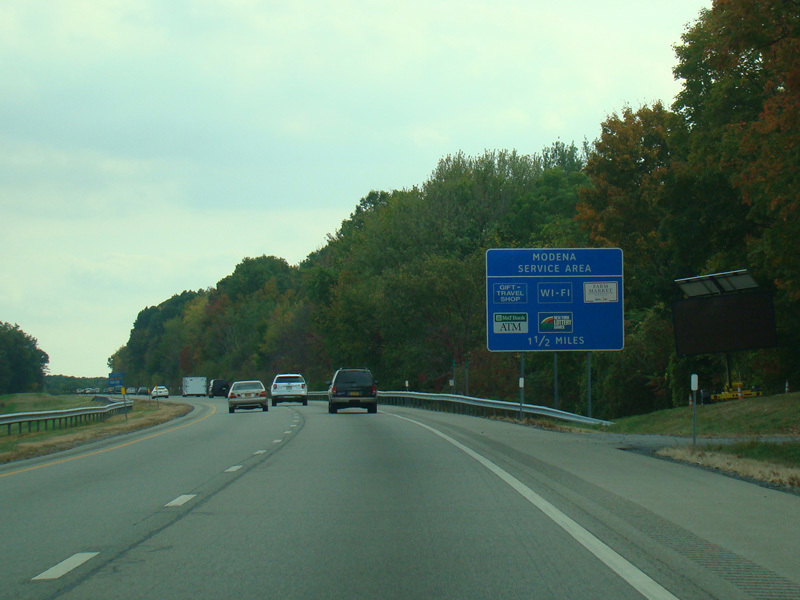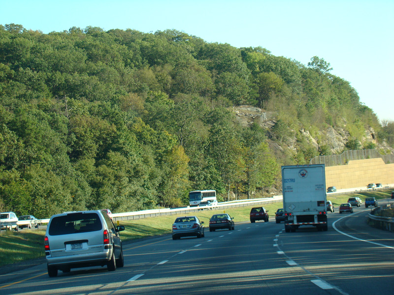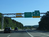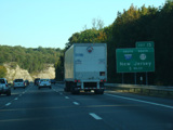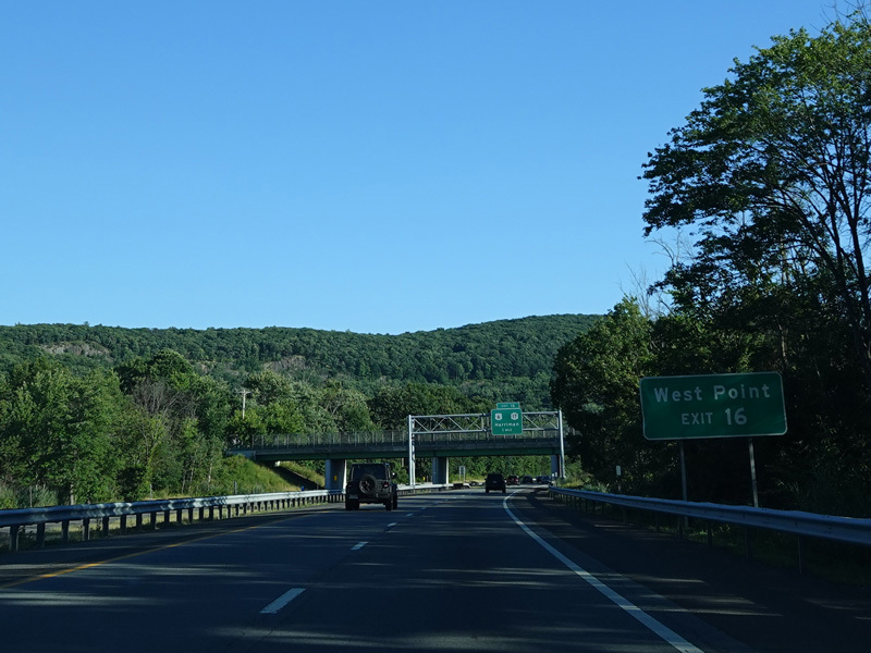 There is a gap between exit 16 and exit 15A. There are some cliffs along the left side of the highway along this stretch. There is advance signage for the Ramapo Service Area and exit 15.