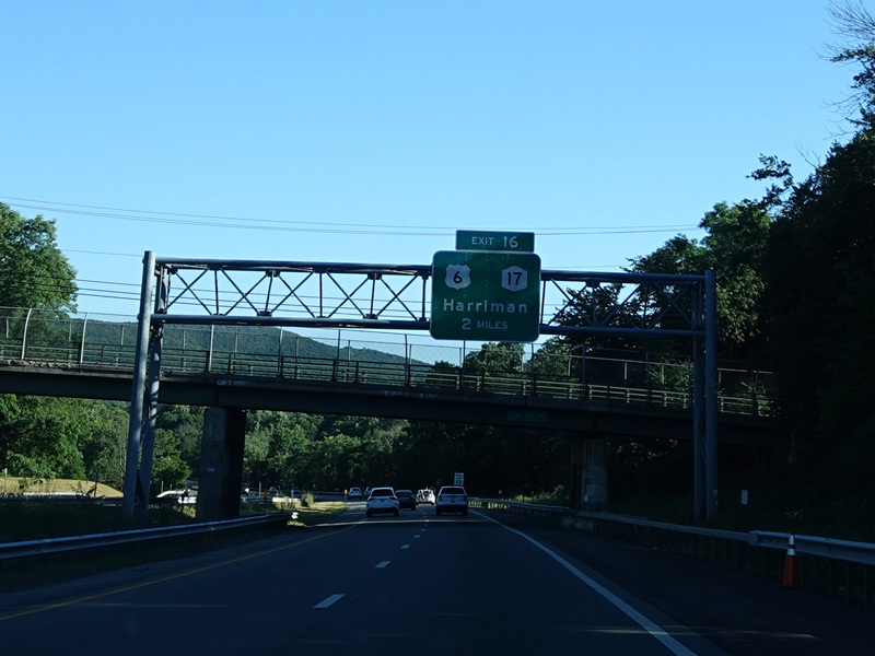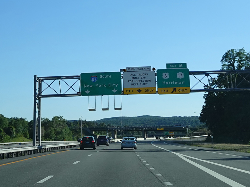 Exit 16 is for the Quickway (US 6/NY 17/Future I-86). There is a cashless tolling gantry, as well as a truck inspection, immediately after the exit.