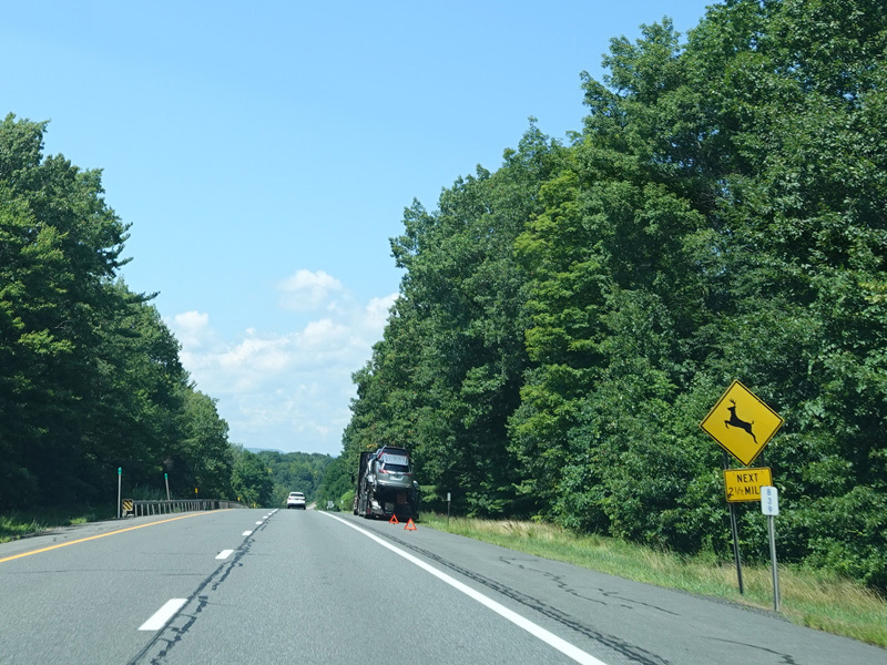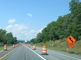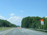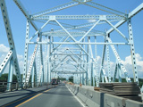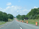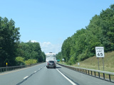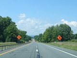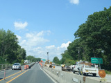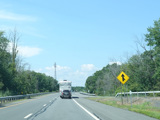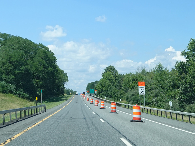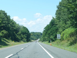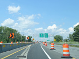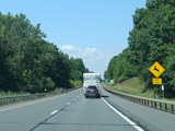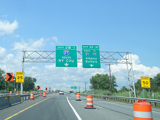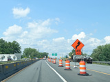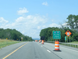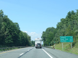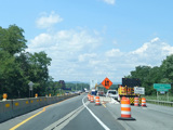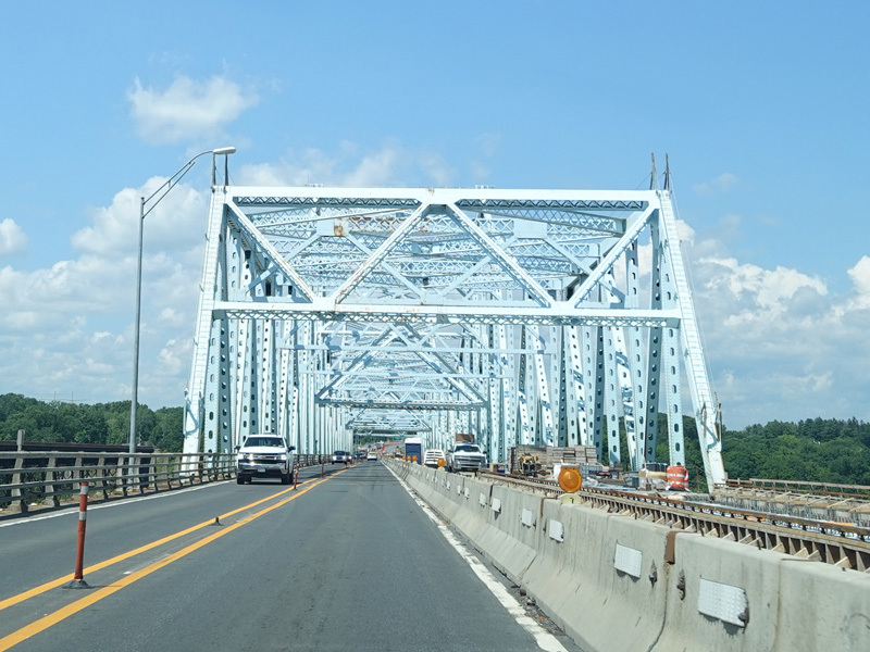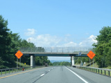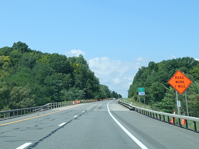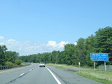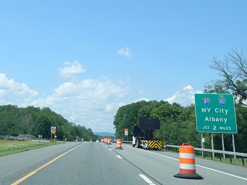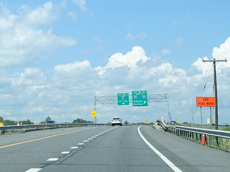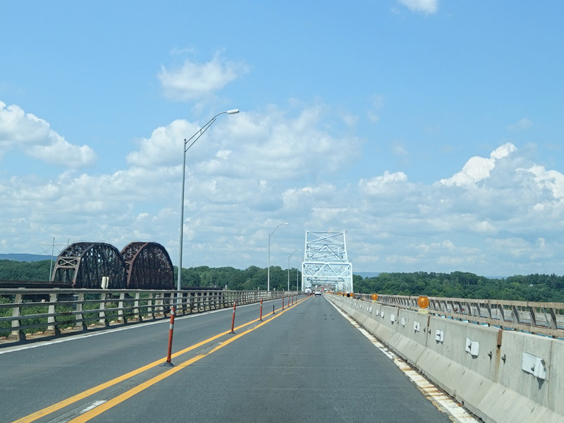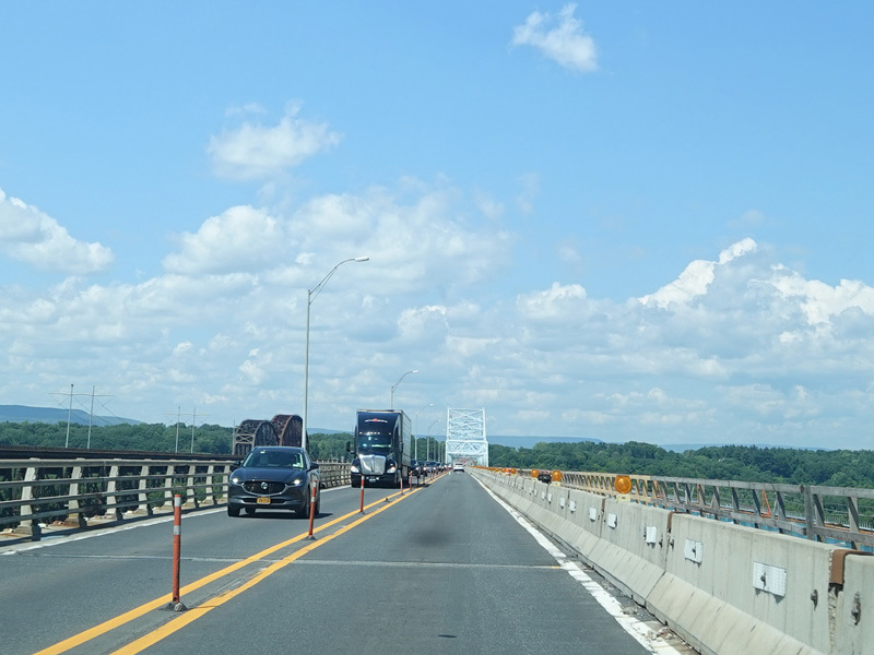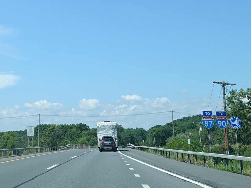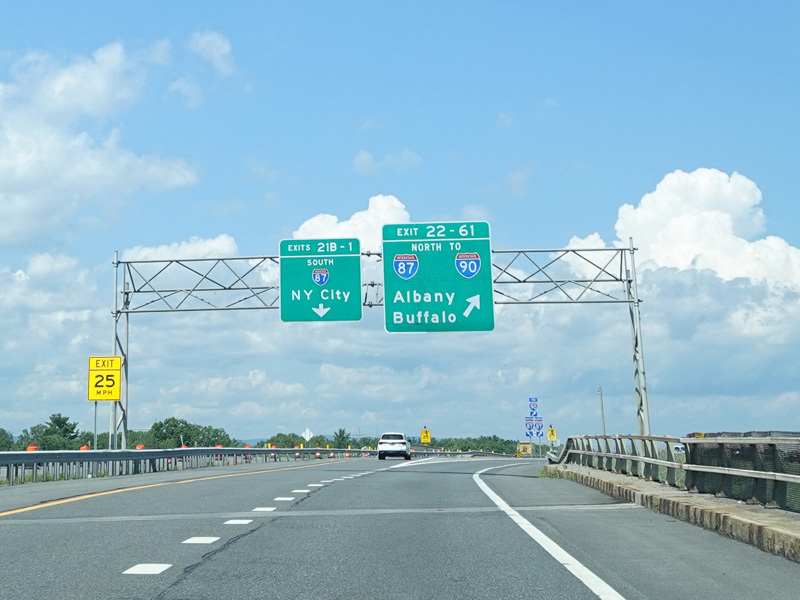 Motorists who don't take exit B1 to stay on I-90 follow the westernmost few miles of the Berkshire Connector, which has a reference route number of 912M but no signed route number. The Castleton-on-Hudson Bridge carries it across the Hudson River to Albany County. The bridge is currently narrowed down to a single lane in each direction due to construction. On the other side, the Berkshire Connector ends at the mainline of the New York Thruway (I-87). Use the right lane to go north or the left lane to go south.