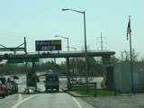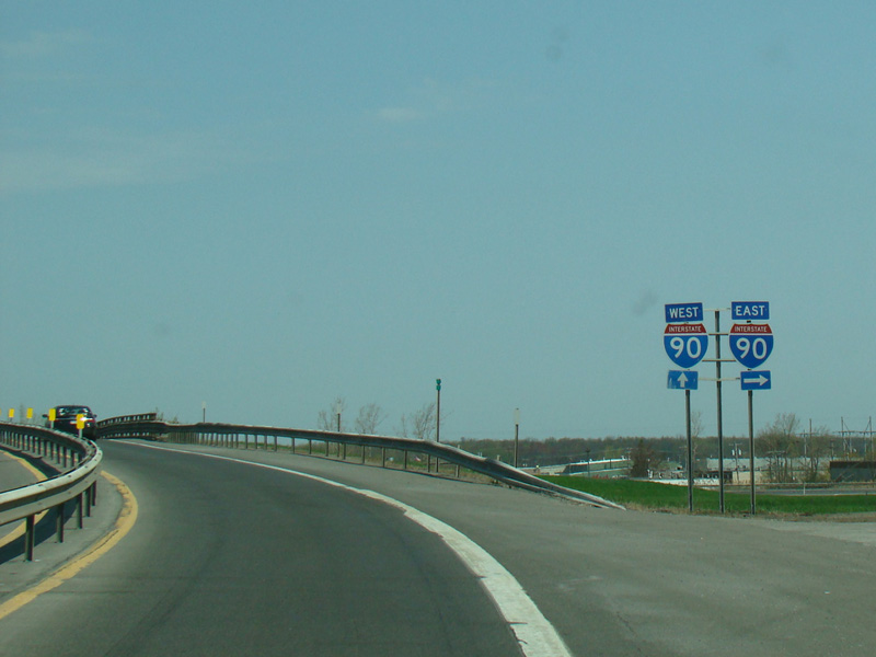 The ramp onto the Thruway from Carrier Circle at exit 35 splits after the toll. Bear right to go east or continue straight ahead to go west.
