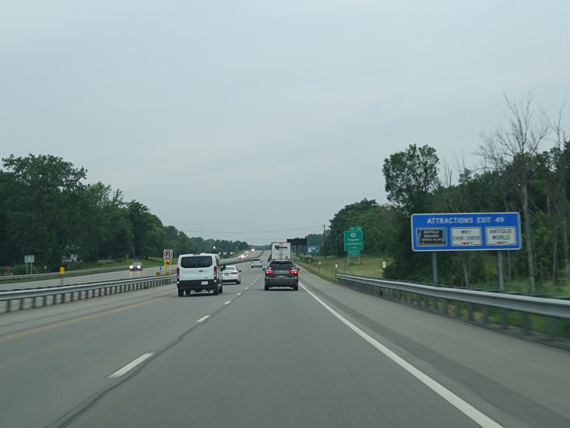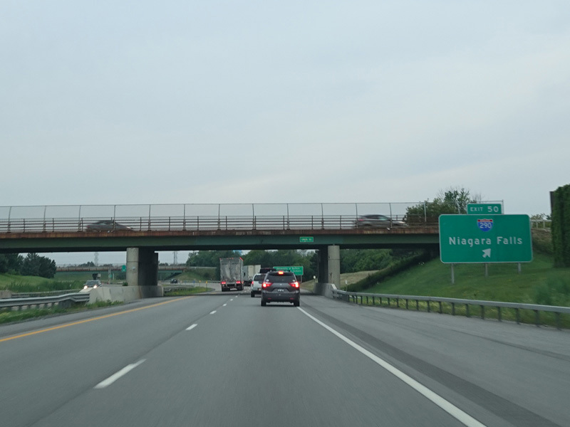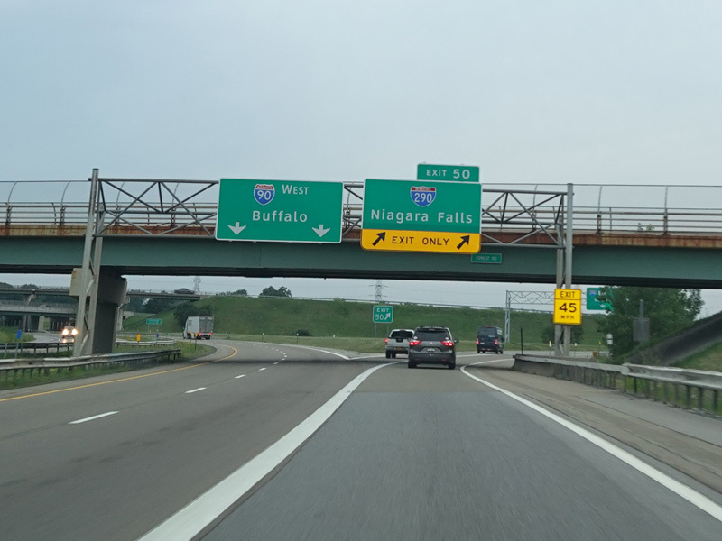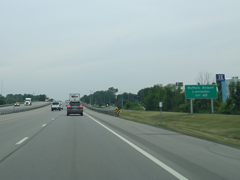 Coming into Buffalo, the speed limit drops to 55 MPH. Exit 50 is for the Youngmann Memorial Highway (I-290) west.