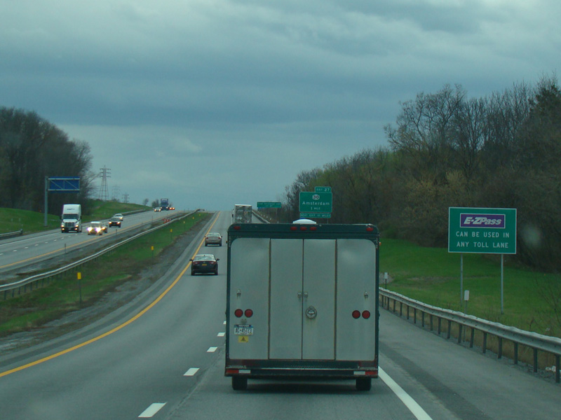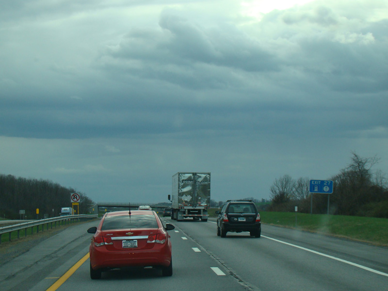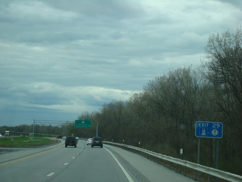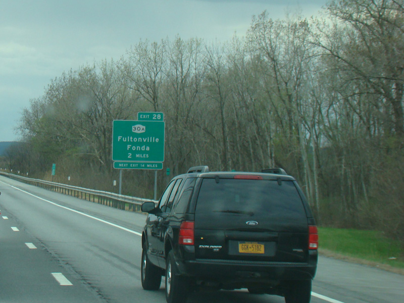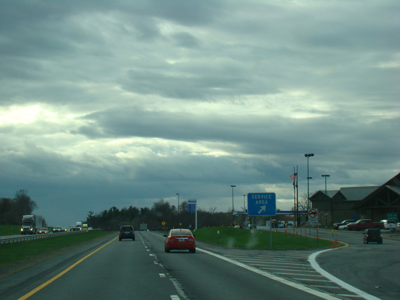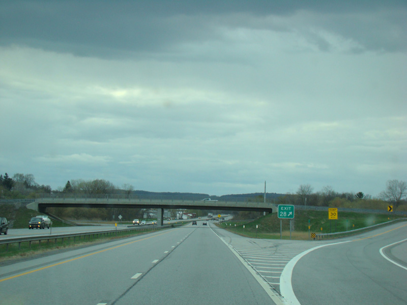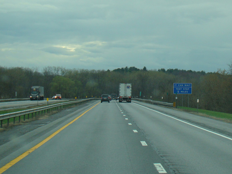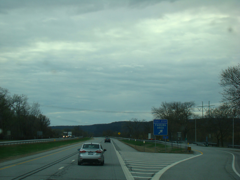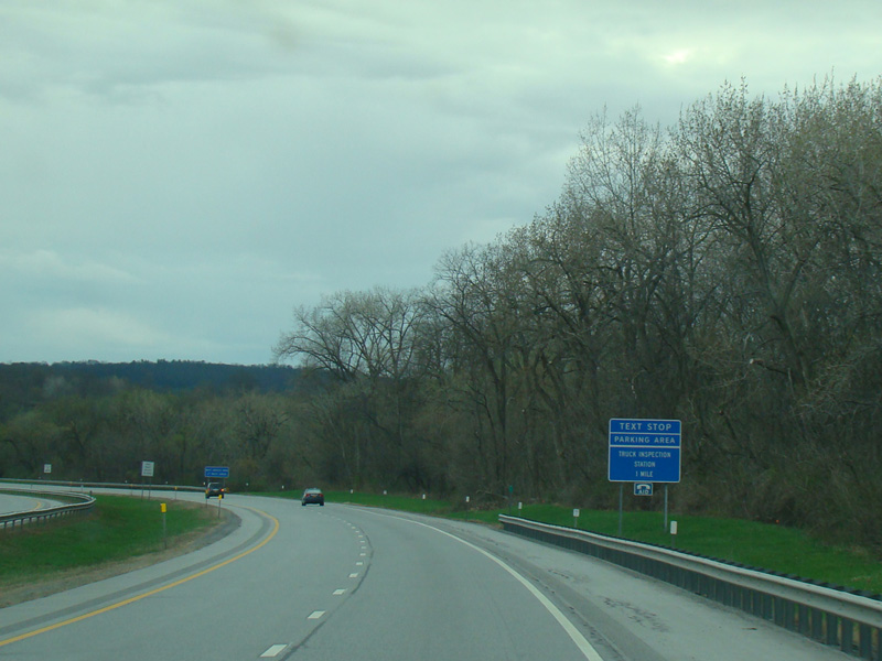 There is a text stop, parking area, and truck inspection station just past exit 28.