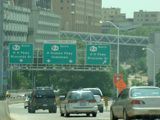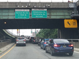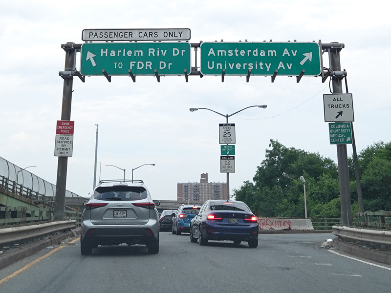 The ramp for exit 1B splits. Bear left for the Harlem River Drive or right for Amsterdam Avenue and University Avenue.