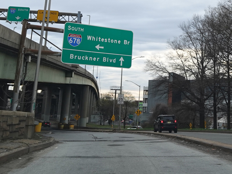 The ramp for exit 6A when travelling south splits. Bear left for the Whitestone Bridge (I-678) or continue straight ahead for Bruckner Boulevard.