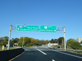 The ramps for exit 1A of the northbound and southbound Cross Bronx Expressway merge together and then split. Use the inner lanes for the Henry Hudson Parkway (NY 9A) south. Use the outer lanes for the Henry Hudson Parkway (NY 9A) north and Riverside Drive.