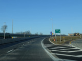 The ramp for exit 21 from the northbound New England Thruway splits. Bear left for the Cross Westchester Expressway (I-287) west. Bear right for Boston Post Road (US 1) north.