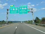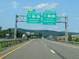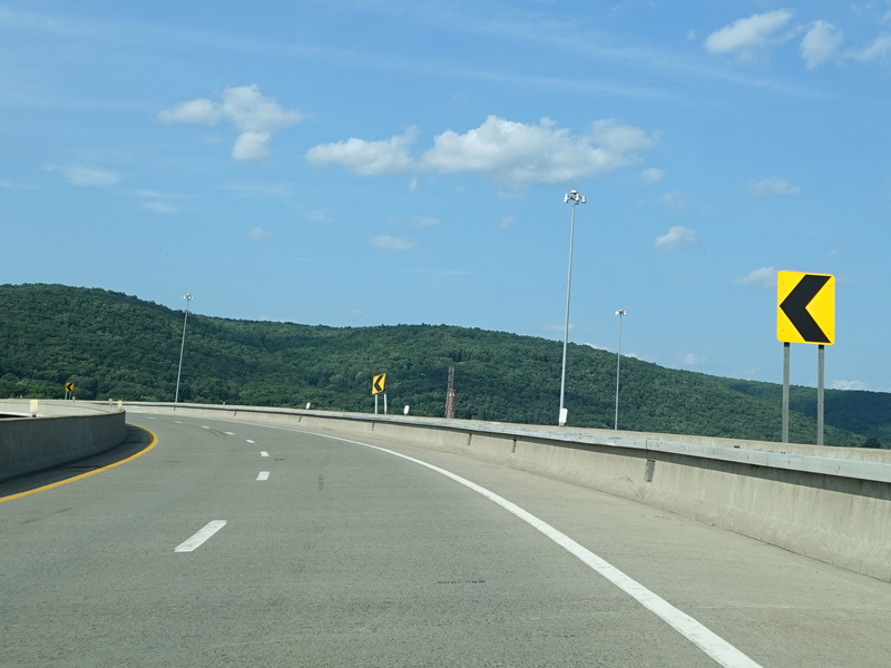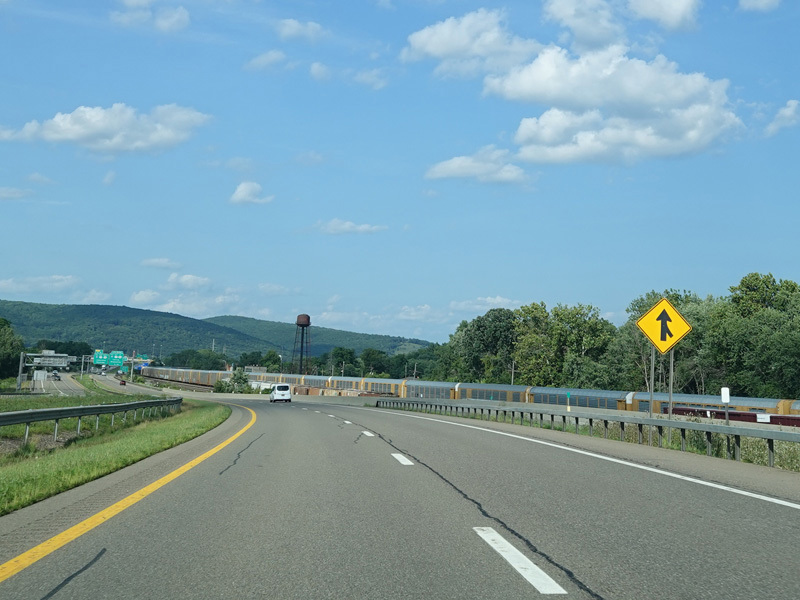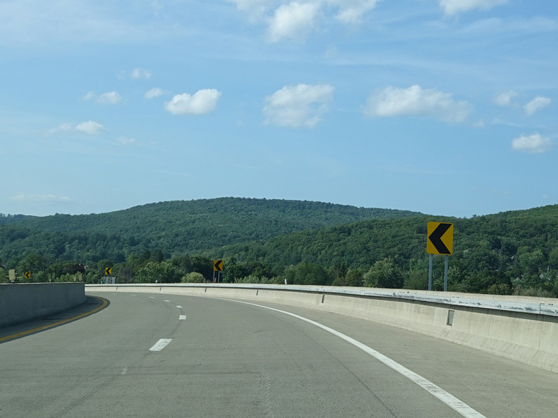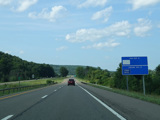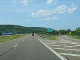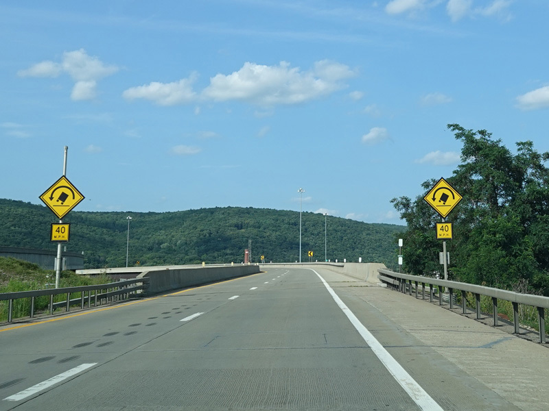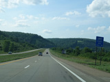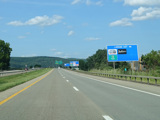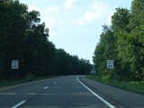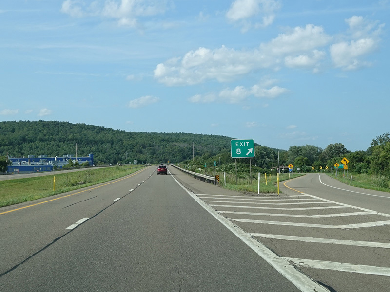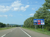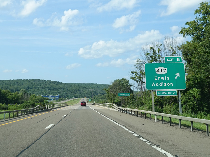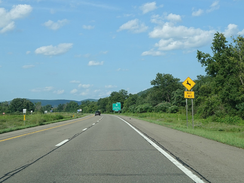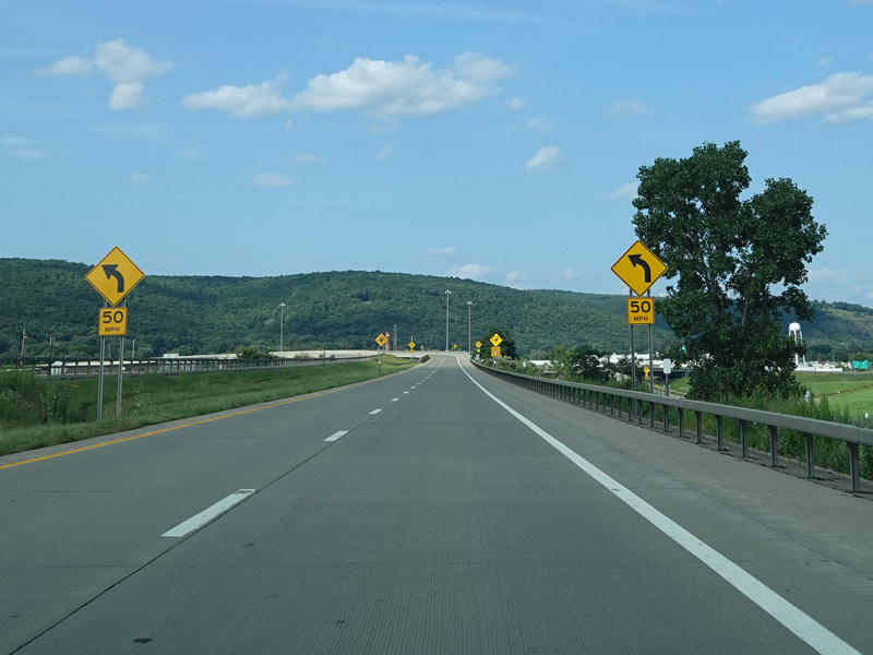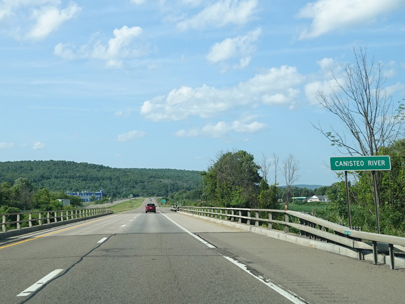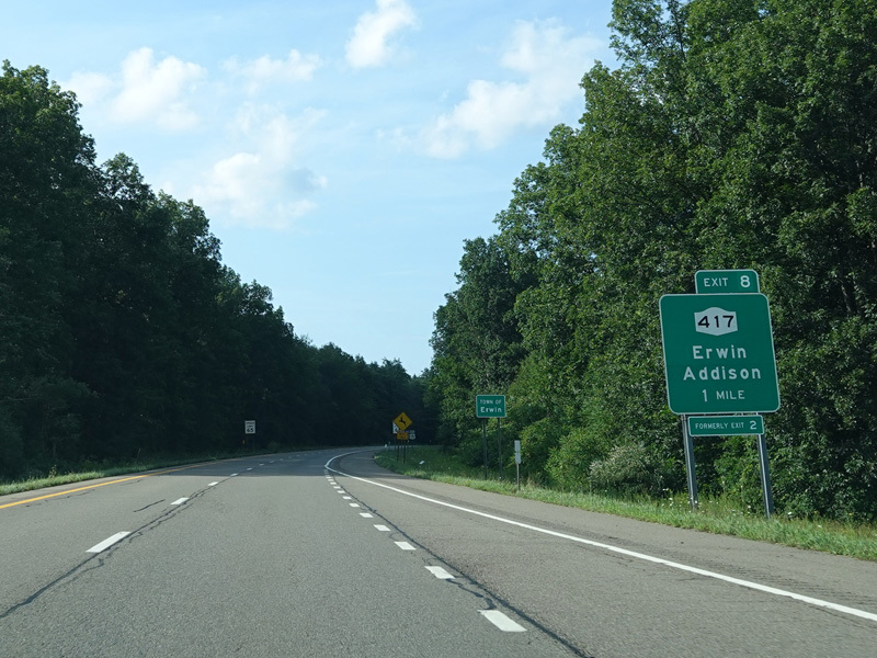 Welcome to New York! I-99 begins here as US 15 enters the state from Pennsylvania. The two routes are multiplexed for their entire length in the state. There are no exits for the first few miles.