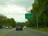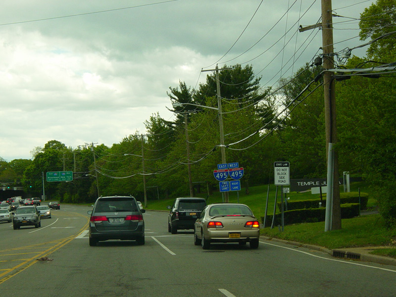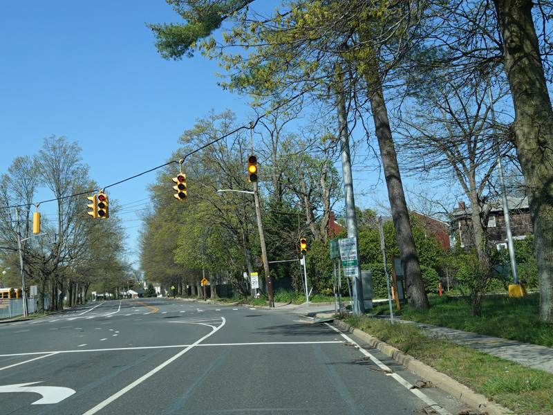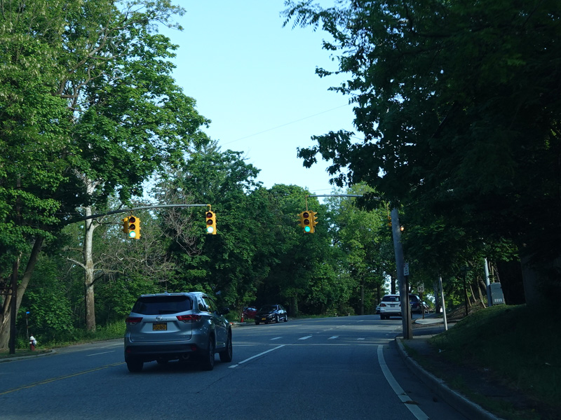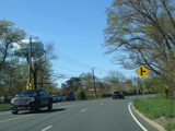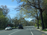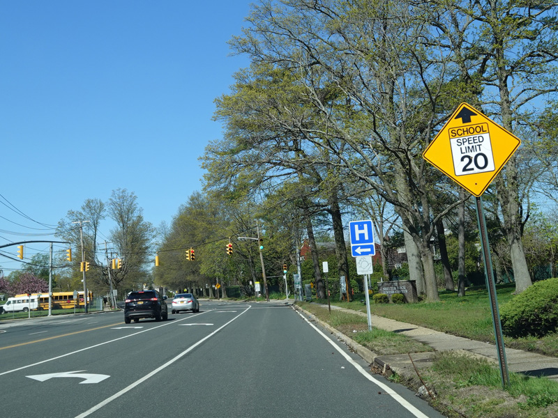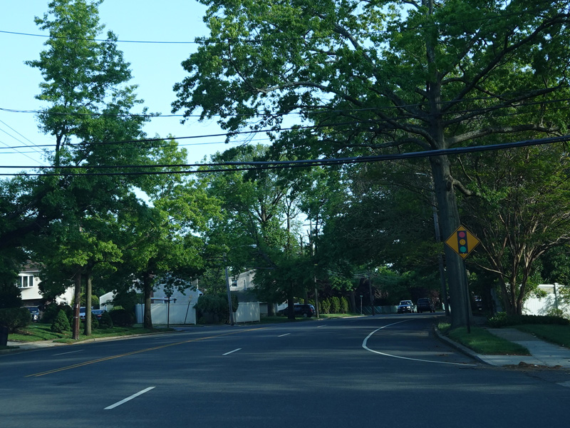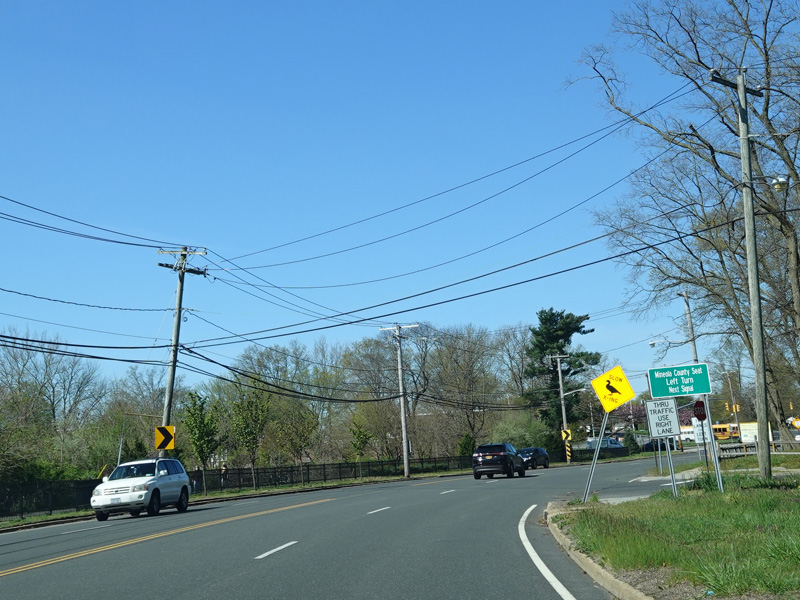 Searingtown Road ends here at a traffic light at CR 8. Turn left onto Herricks Road to go south. Continue straight ahead onto Shelter Rock Road to go north.