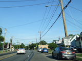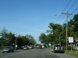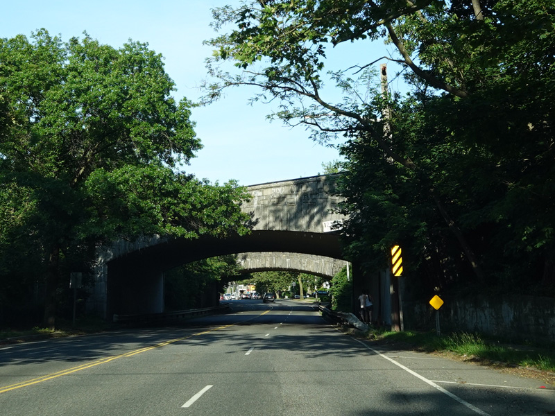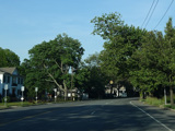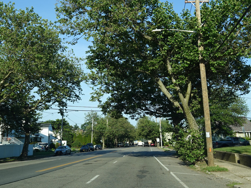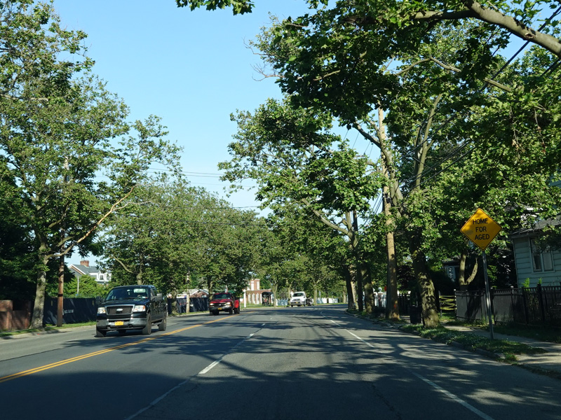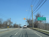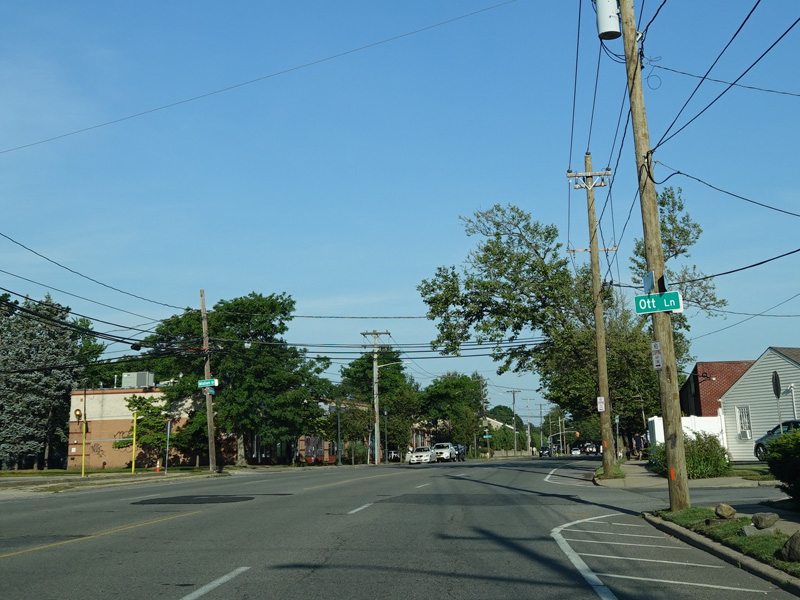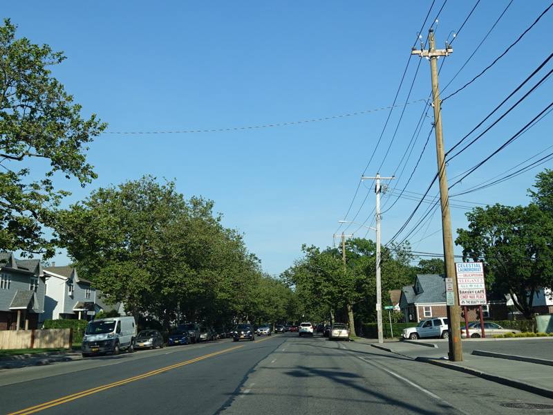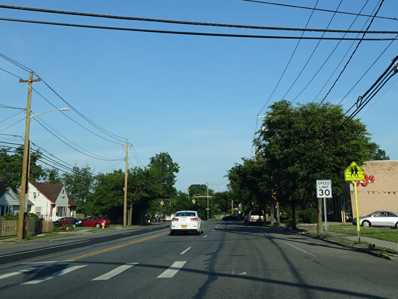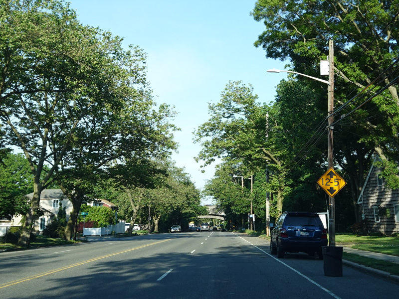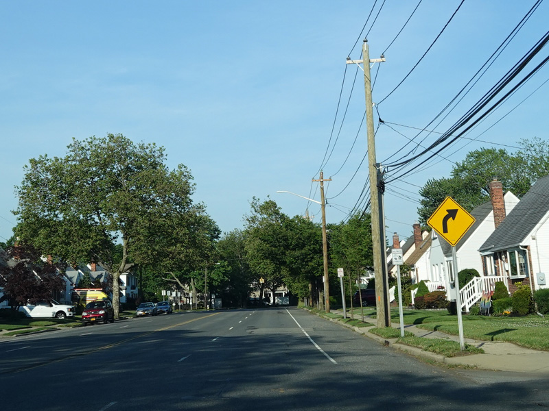 Jerusalem Avenue passes over the Meadowbrook Parkway, but the is no interchange. Immediately after the overpass, the roadway splits. Turn left for North Jerusalem Road (CR 181), which begins here. Bear right to stay on Jerusalem Avenue.