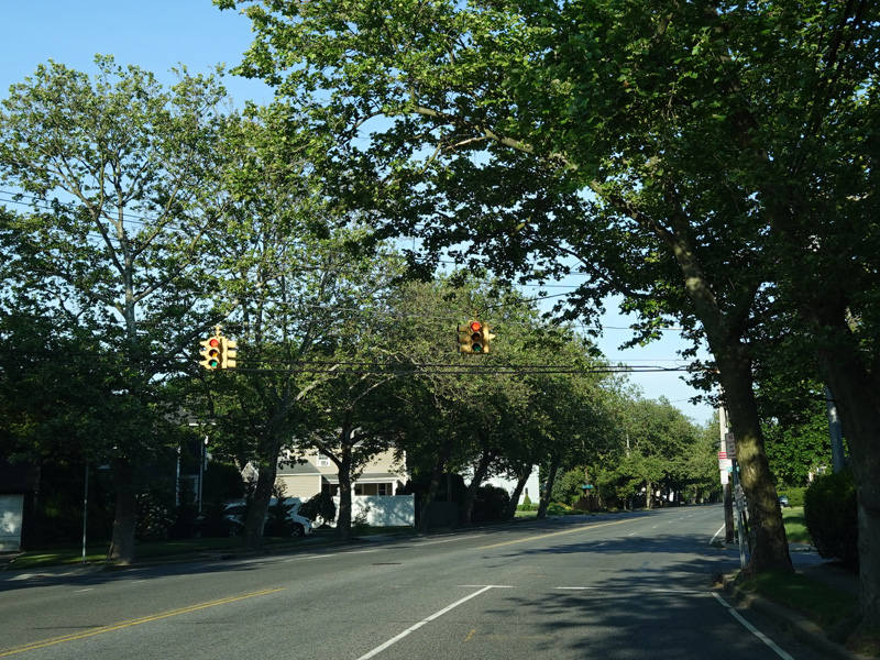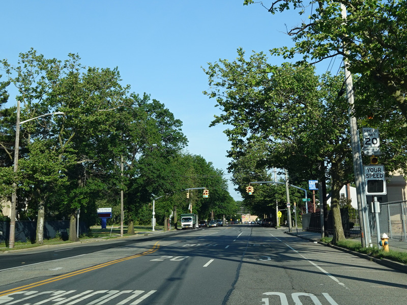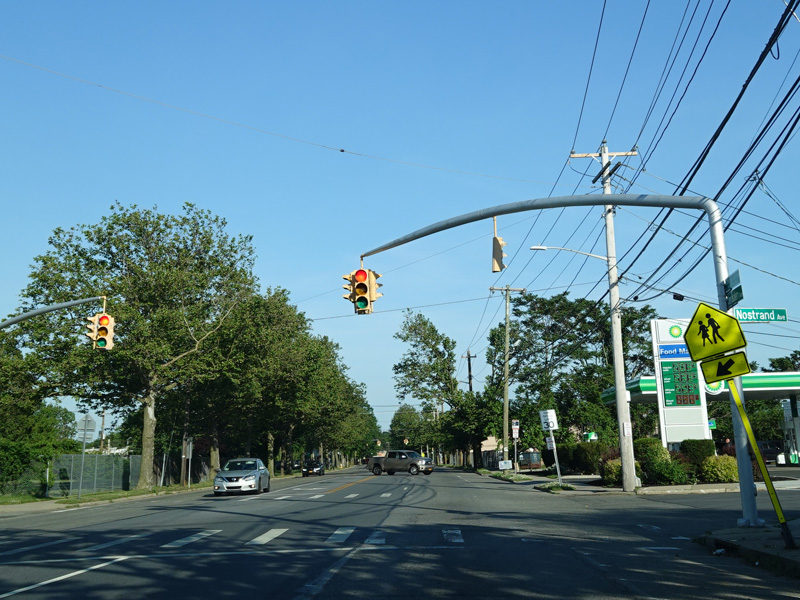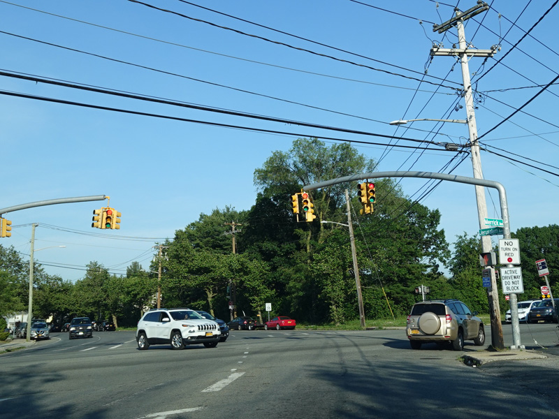 There is a traffic light at Merrick Avenue (CR 4). Turn left to go north or right to go south.