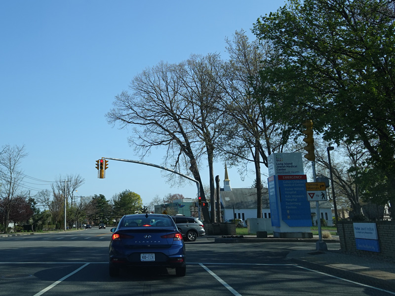 There are a lot of doctor's offices along this stretch. Long Island Jewish Medical Center is on the right.