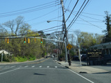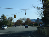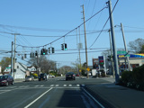 Lakeville Road ends here at a traffic light at Jericho Turnpike (NY 25). Turn left to go east or right to go west.