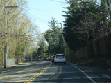 The southbound side of Lakeville Road narrows down to a single lane, while the northbound side keeps one lane for a little while longer.