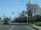 There is a traffic light at Union Turnpike. At this intersection, Lakeville Road touches the Queens-Nassau county line. To the right, Union Turnpike runs west into Queens as a New York City road. To the left, Union Turnpike runs east as a state route with the designation of NY 25C. At this intersection of three route systems (New York State, New York City, and Nassau County), the traffic light is provided by the Nassau County Department of Public Works.