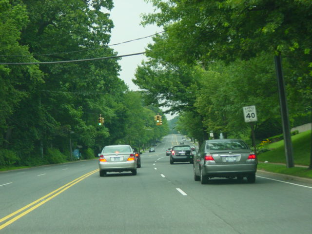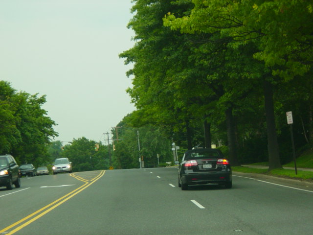 Community Drive begins at the Long Island Expressway (I-495) and runs north through Manhasset. North Shore University Hospital is on the right.