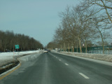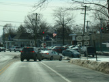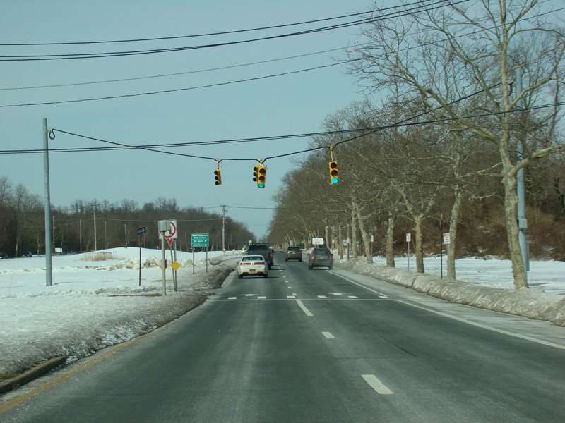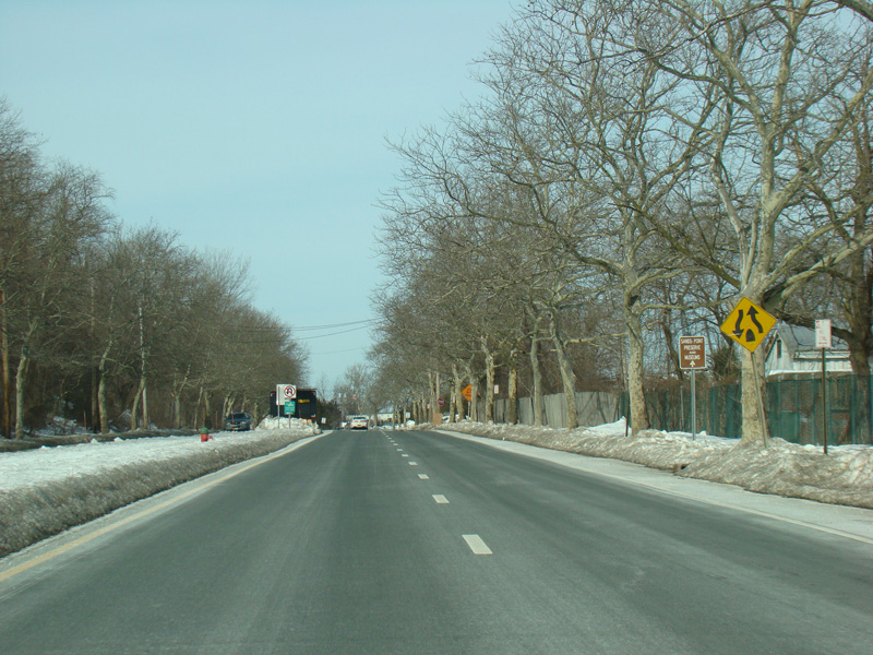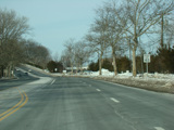 West Shore Road becomes a divided highway. There is a traffic light at Fairway Drive, which can be accessed through an exit on the left and provides access to the Harbor Links Golf Course.
