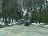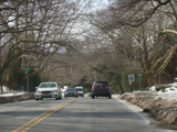 At the top of the hill, West Shore Road narrows down to two lanes and changes names to become Beacon Hill Road. There is a traffic light at Longview Road.