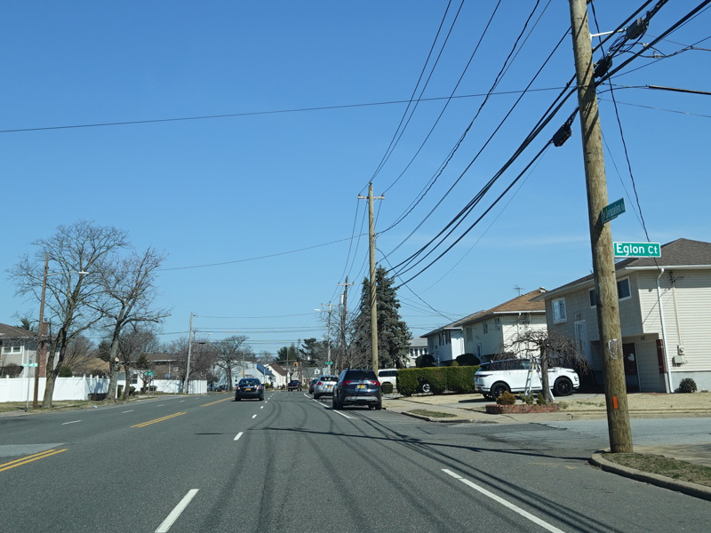 North Jerusalem Road begins at Jerusalem Avenue (CR 105) just east of the Meadowbrook Parkway. It runs east through East Meadow as a four-lane undivided road.