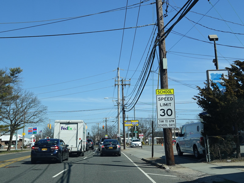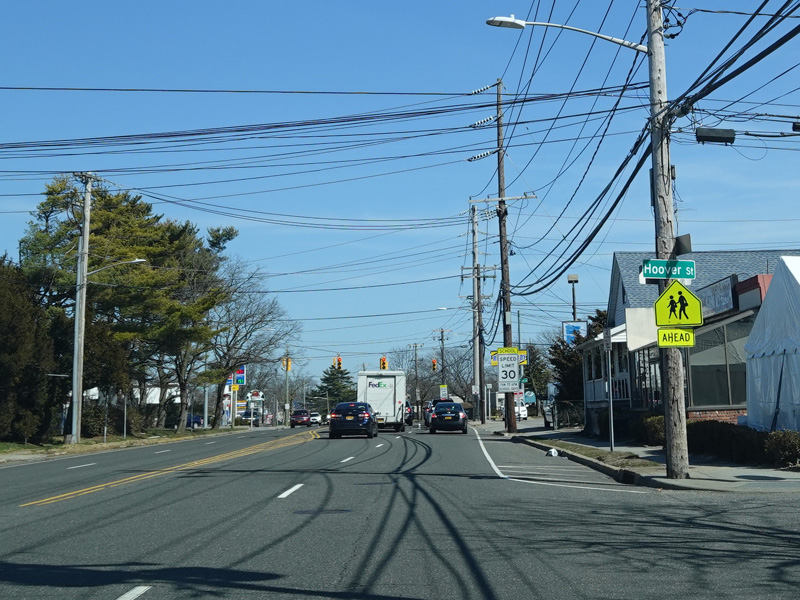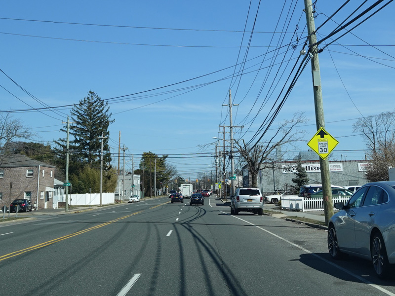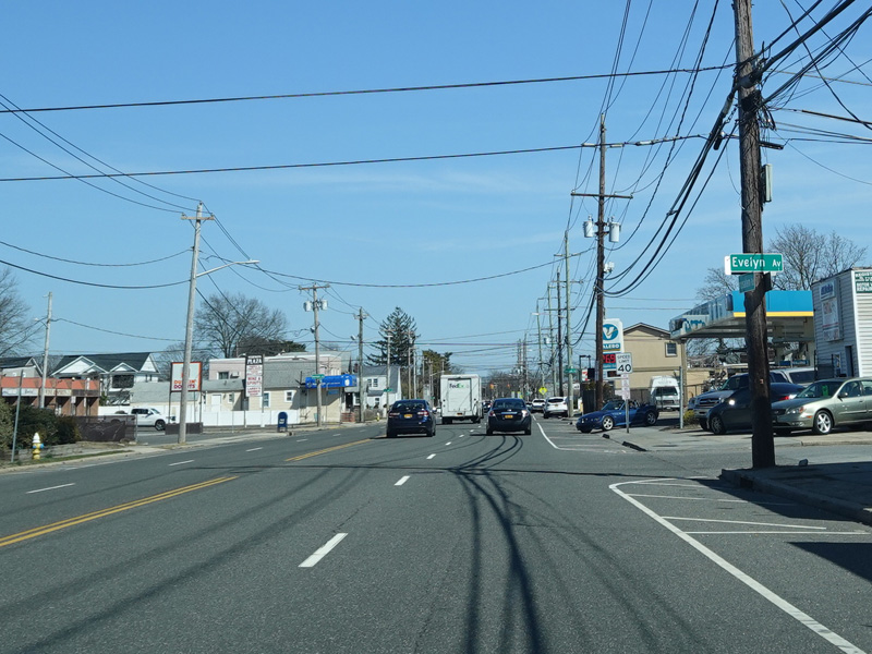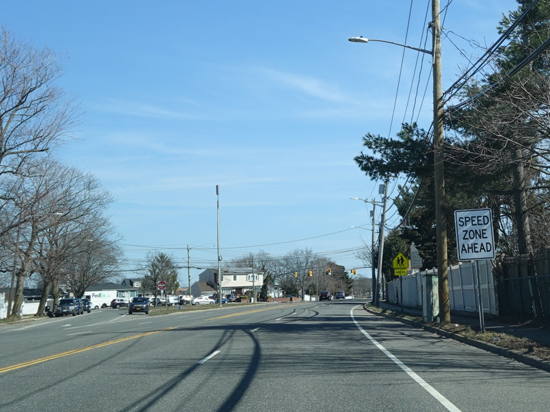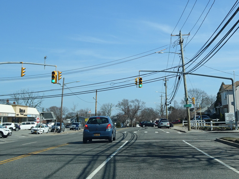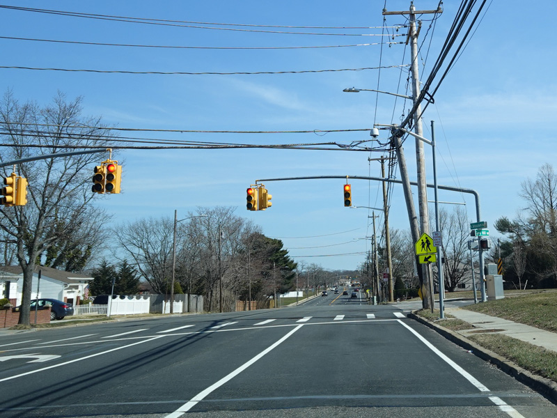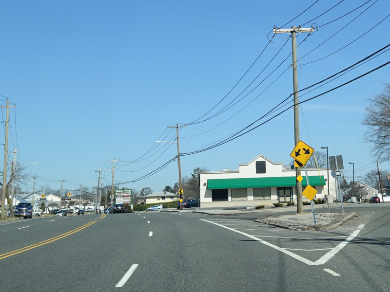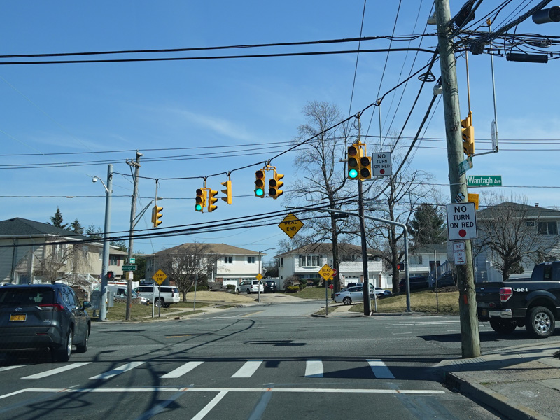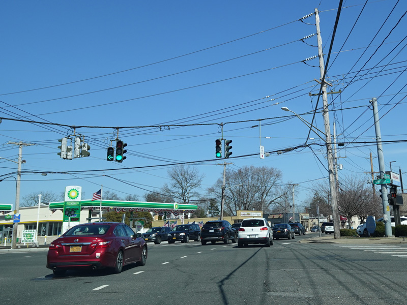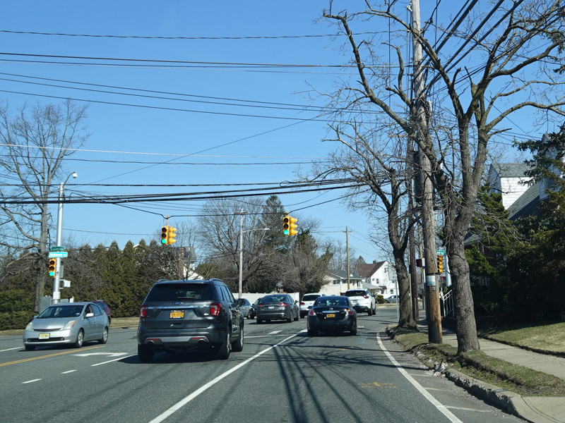 There is a traffic light at Merrick Avenue (CR 4). Turn left to go north or right to go south.