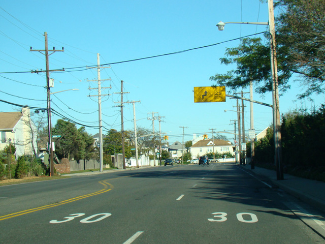 CR 22 is the main east/west road in Atlantic Beach. It begins at the southern terminus of the Nassau Expressway (NY 878) and runs east to the Long Beach city line. The entire length is a four-lane undivided road with traffic lights. CR 22 begins as Park Street and then changes to become Beech Street. At the city line, Beech Street narrows down to two lanes and continues into Long Beach as a local street.