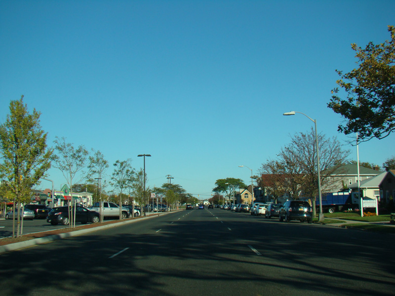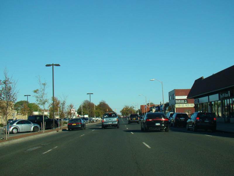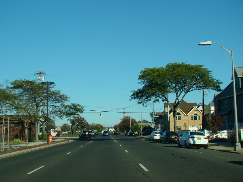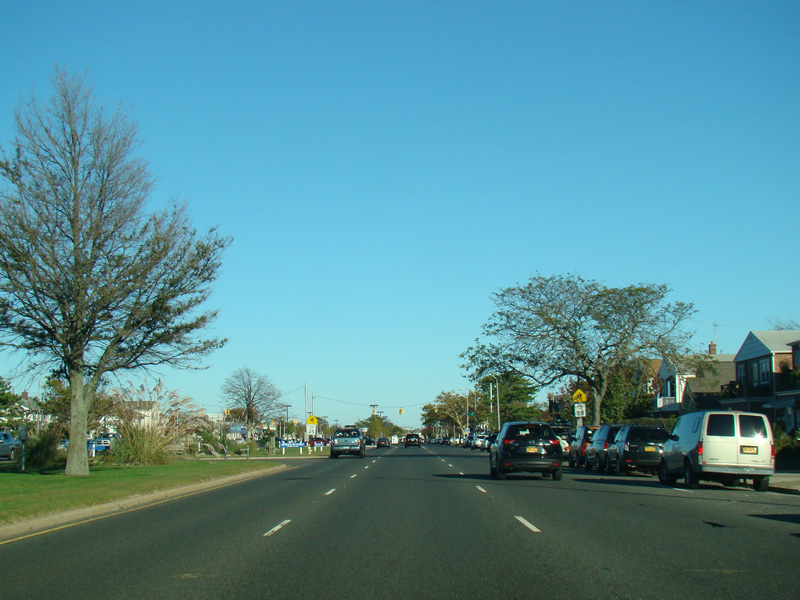 At the Long Beach city line, the median narrows and East Park Avenue changes name to become Lido Boulevard.
